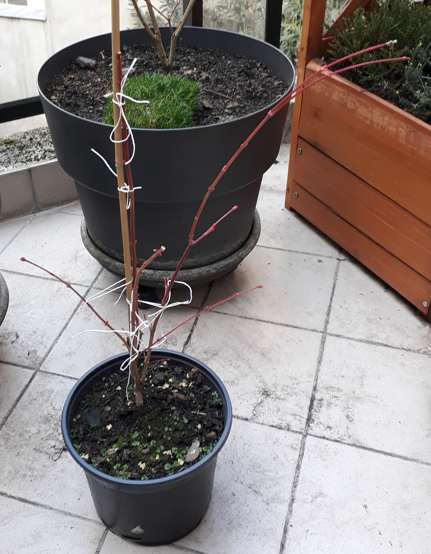 Sur le grand n'hésitez pas à me dire s'il faudrait tailler encore davantage, c'est encore possible d'autant plus qu'il ne montre pas de signe de réveil contrairement au petit dont les feuilles apparaissent.