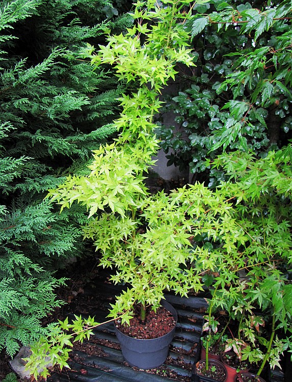 Chaque fois que je cultive un Acer de graine ou que jâen greffe un, je remarque quâil pousse beaucoup plus lentement que des plants Ă©quivalents produits par beaucoup d'Ă©leveurs (ceux de Maillot ne sont pas les plus poussants, ils sont longs Ă se dĂ©velopper mais je prĂ©fĂšre).