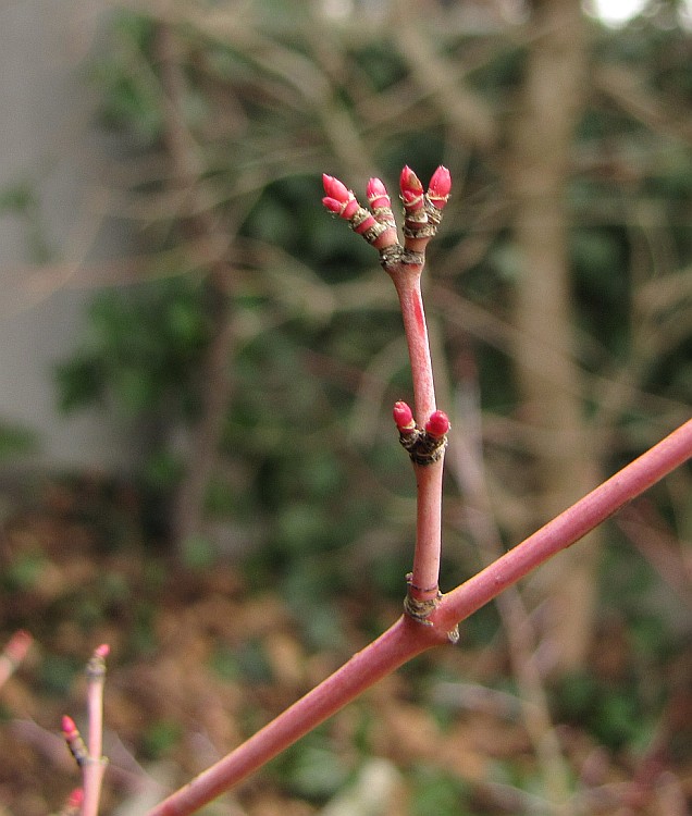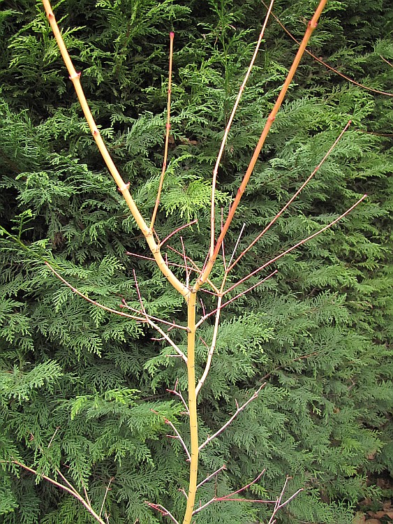 AprĂšs les jours de gel (-12.2 ici au plus fort), les branches les plus fines ont pris une couleur corail :