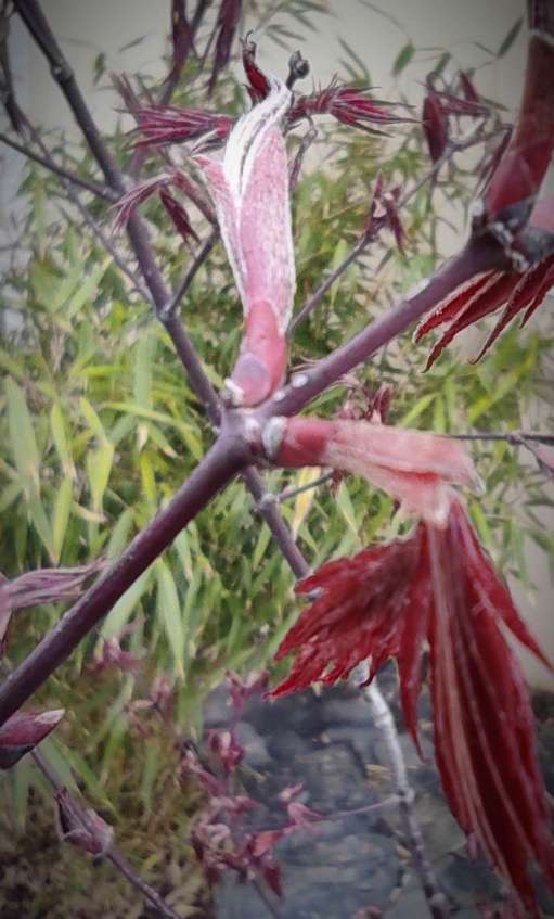 A part 'katsura', toujours l'un de premiers à sortir ses feuilles, voici d'autres cultivars (beaucoup plus rares) qui devancent tous les autres sur le site du petit jardin (qui se vide petit à petit, reste plus qu'une grosse centaine de sujets). Sur le site du grand jardin (moins tempéré), l'explosion des formes et des couleurs attendra encore un peu...