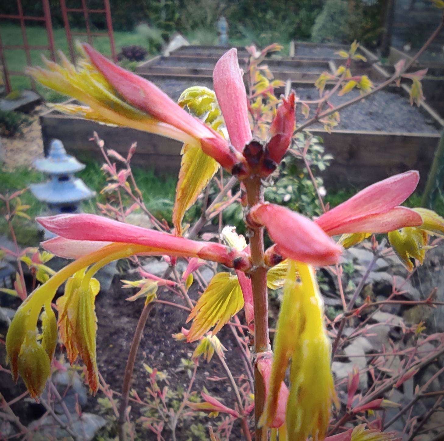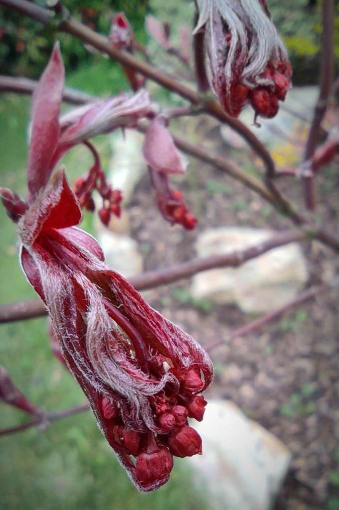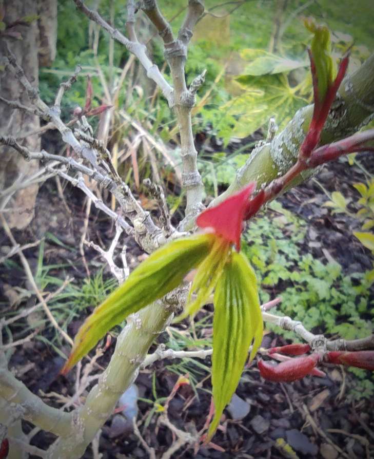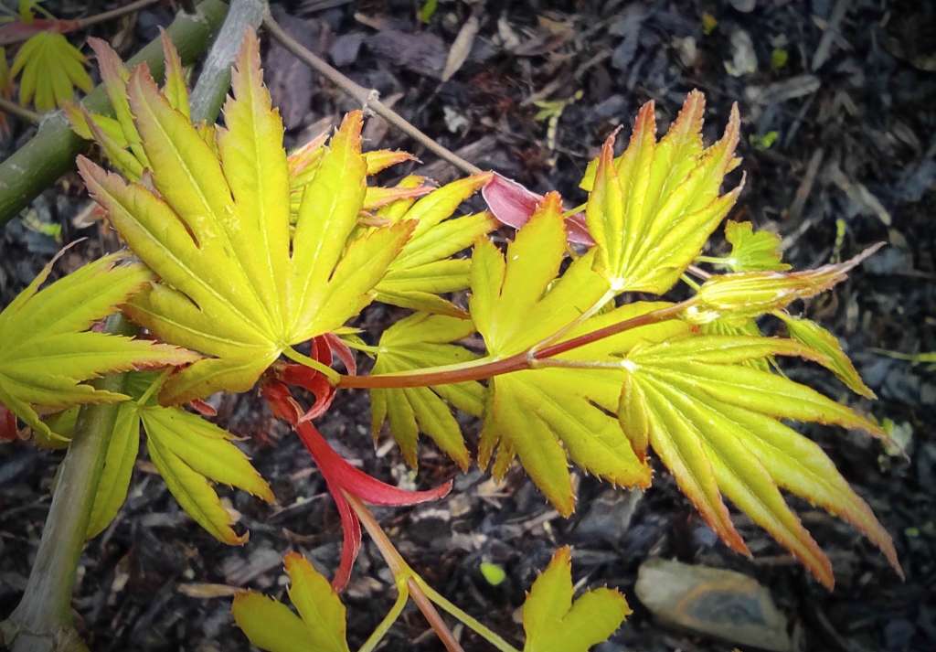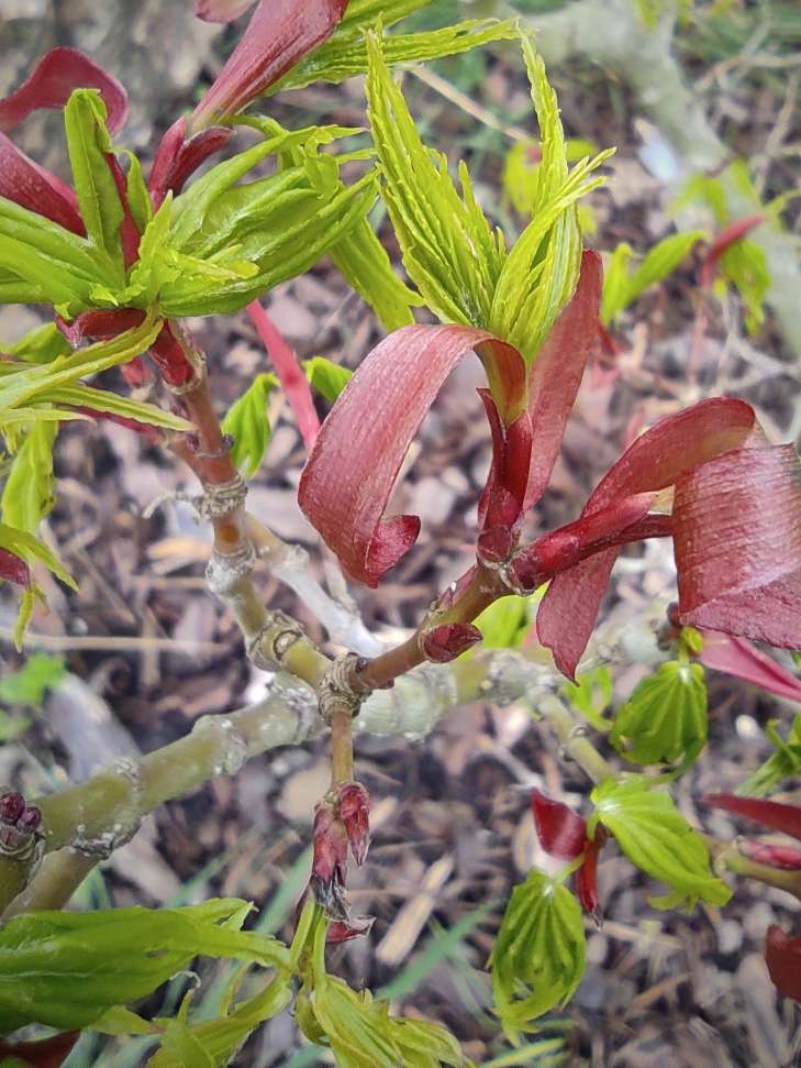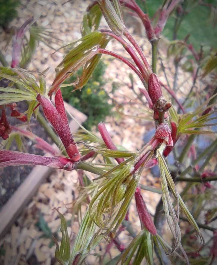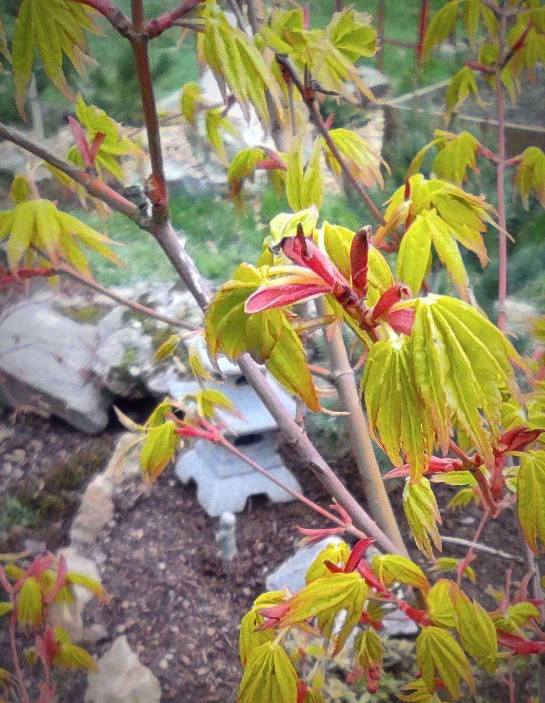 A part 'katsura', toujours l'un de premiers à sortir ses feuilles, voici d'autres cultivars (beaucoup plus rares) qui devancent tous les autres sur le site du petit jardin (qui se vide petit à petit, reste plus qu'une grosse centaine de sujets). Sur le site du grand jardin (moins tempéré), l'explosion des formes et des couleurs attendra encore un peu...
