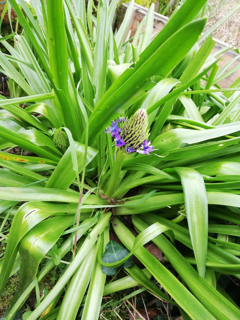 elle fleurit toujours vers la même période début du printemps de façon très fugace cependant , elle reste en feuillage quasi toute l année autrement et les feuilles pourrissent parfois en hiver ... là plusieurs têtes se forment ....On est juste au début de l' éclosion des fleurs ...je dirait que la tige fait à peu pres 20/25 cms de haut ....un gros buisson de feuilles comme les agapanthes...