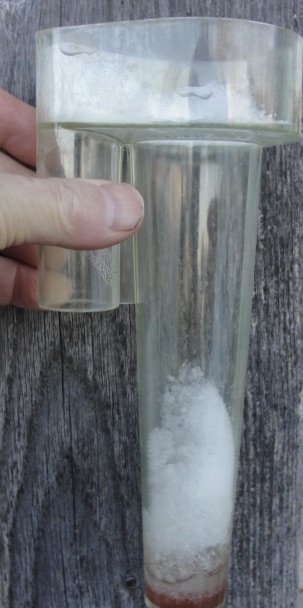 qui ont donné 3 mm une fois la neige fondue dans le pluviomètre - Non c'est pas une bière :wink: