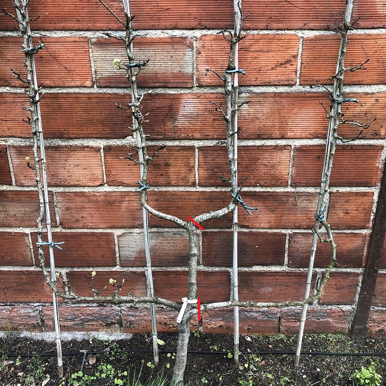 Bonjour ojov, s'il ne repart pas, au pire, tu vas perdre la moitié. Attend du temps sec pour couper comme illustré.... Je vérifierais aussi les liens, qu'ils ne deviennent pas trop serrés. Après, il n'y a que l'arrosage à contrôler...(.les poiriers n'aime pas trop d'humidité autour les racines) et une poignée d'engrais équilibre (e.g. NPK 8-8-8) griffé sur 1m de chaque côté.