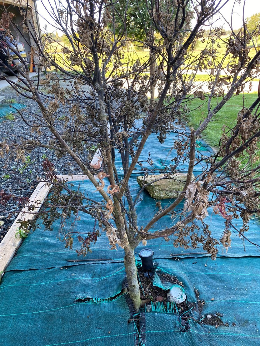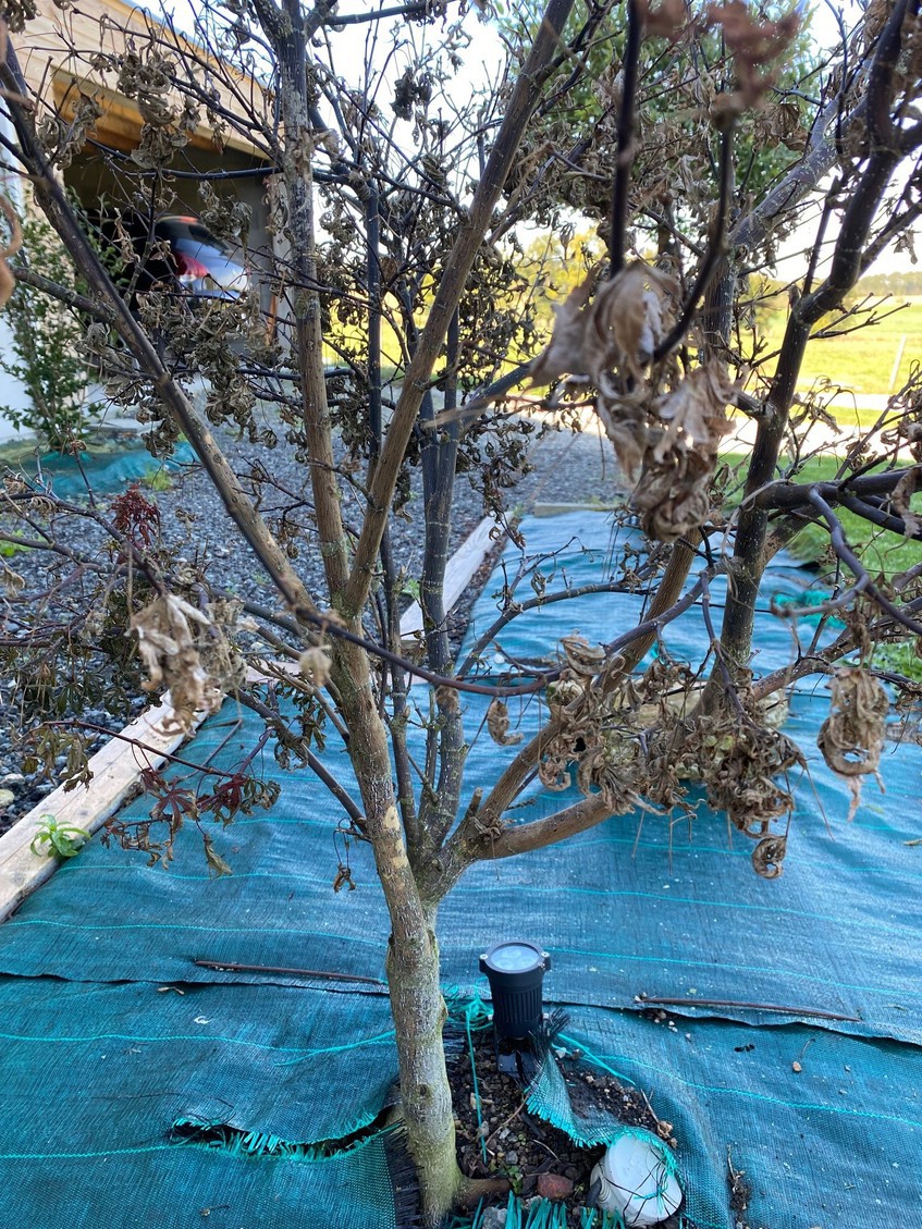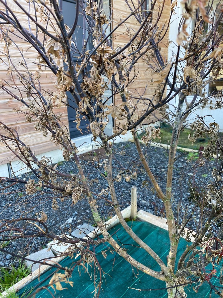 Le mien a perdu ses feuilles comme chaque année mais j'ai l'impression que les branches noircissent.