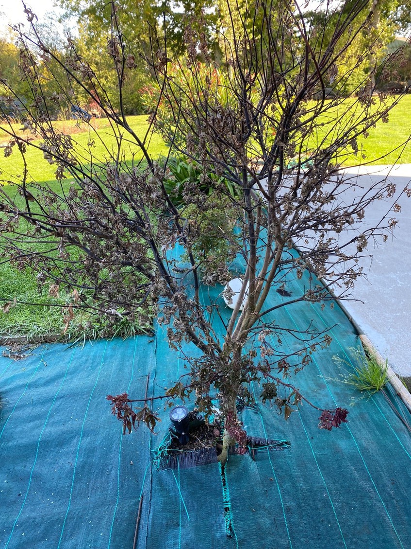Ca sera peut être la première année ou je verrais son feuillage d'automne, juste les pointes des feuilles ont légèrement grillé.
