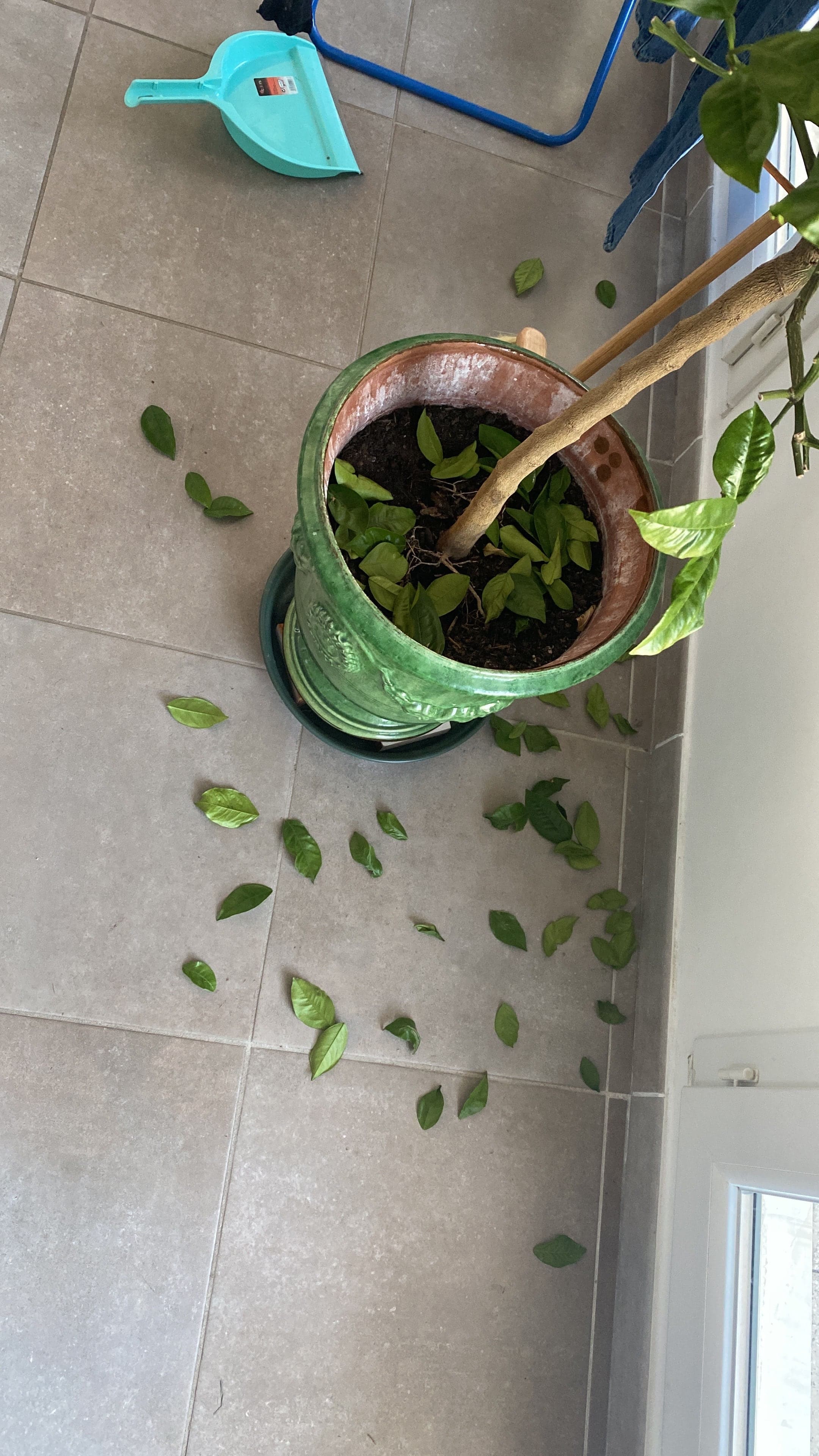 En effet, je l'ai rentré à l'intérieur de mon appartement pour l'hiver, dans une pièce lumineuse et non chauffée. Il a eu des vagues de pertes de feuilles, j'ai alors fait attention à l’arrosage et j'ai surélevé le pot pour l'évacuation de l'eau. La chute s'était alors arrêtée et j'attendais de pouvoir apercevoir de nouveaux bourgeons de feuilles.