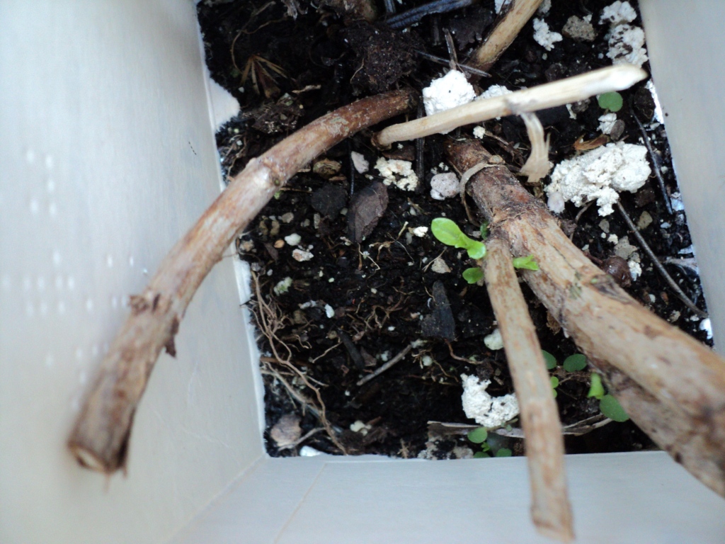 Je l'ai alors taillé, mis en pleine terre et ... oublié le croyant mort. Et je découvre qu'il a fait de minuscules pousses bien vertes (très difficiles à photographier !!). Est-ce que je peux lui faire un soin particulier pour l'aider à revivre ? J'ai mis un entourage en carton pour le protéger des risques de gel qui pourraient reprendre pendant encore quelques semaines.