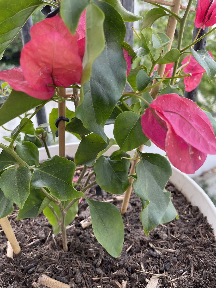 J'ai rempoté il y a deux semaines un bougainvillier et un rosier achetés, placés en balcon exposition sud (mais avec le temps en ce moment ça ne change pas grand chose ...), arrosage environ deux fois par semaine. La terre reste très sèche mais j'ai cru lire qu'il ne fallait pas trop d'eau pour l'un comme pour l'autre.