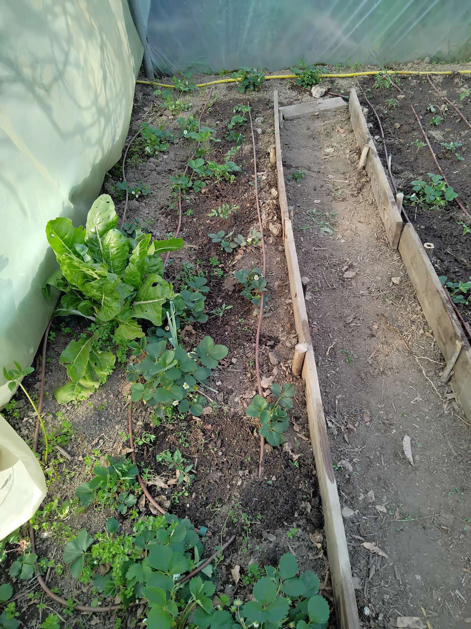 Les premières sont plantées entre les fraisiers survivants (qui ont souffert du problème de mes gouttes à gouttes bouchés, mais heureusement, j'en avais déjà déplacé pas mal).