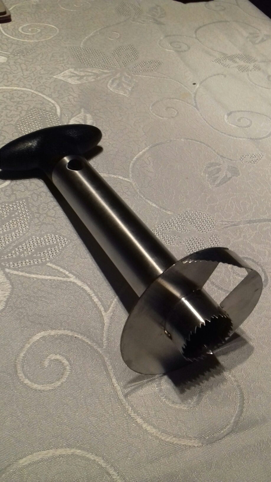 J'en ai acheté un récemment et je peux aussi vous dire que c'est un éplucheur d'ananas. Par contre, je ne l'utilise pas souvent, vu qu'il faut assez de force pour l'employer. J'espère avoir pu vous aider