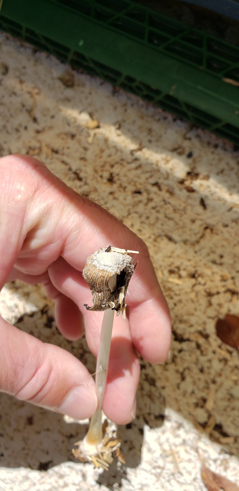 Il pousse très rapidement dans le paillis de chanvre sous serre, il mesure de 8 à 12cm et fanent très rapidement aussi mais surtout il pousse toujours à côté de mes salades d ailleurs quand le champignon a fini son cycle et qu'il fanent il retombe sur mes légumes et laisse des dépôts noirâtres comme je ne connais pas avec certitude ce champigon j'ai peur de consommer mes légumes . Pourriez-vous maider à l identifier ? Je joint quelques photos, Dans le même temps je vais continuer mes recherches .