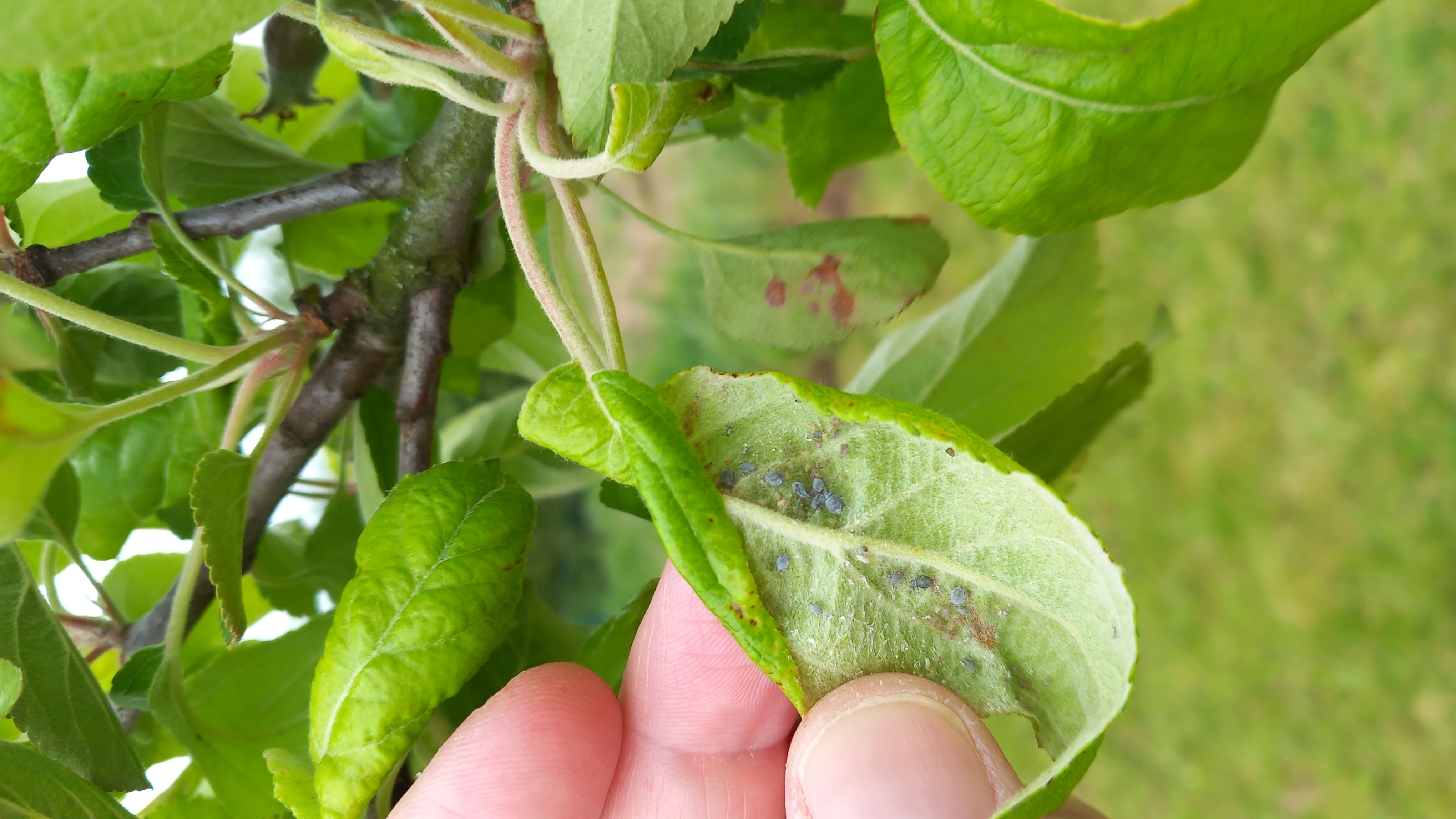Voici mon deuxième problème ! Sur un fruitier il y a une attaque de petites bêtes ! (Cf photo) est ce des pucerons ?
