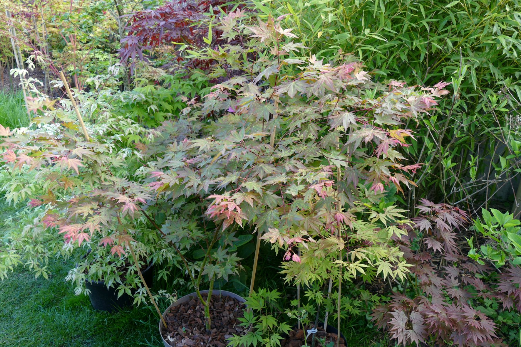 un cultivar vraiment facile, costaud, résiste au soleil et au vent, très poussant, fait de très longues pousses et sans être poussé à l'azote, je ne mets aucune engrais aux érables en pleine terre.