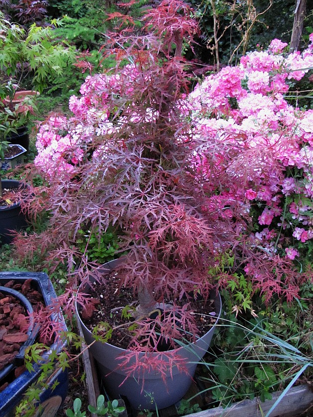 De toutes façons, les dissectums en bonsaï, si ce n'est pas courant du tout, c'est que ça se prête mal à cet "art", tant pour l'esthétique, difficile à conduire, que de la culture, difficile à maintenir.