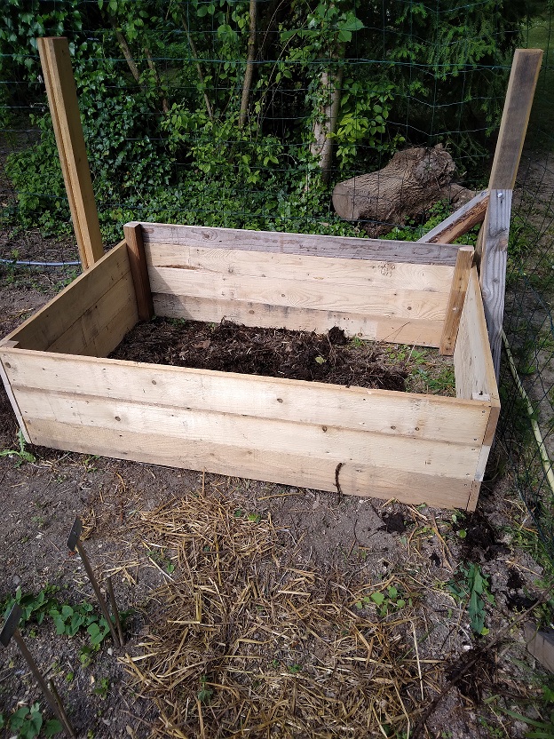 1,5 m x 1 m x 0,4 m. J'y ai mis mes 3 pieds de melons "Piel de sapo" et un pied de tomate "Marmande"