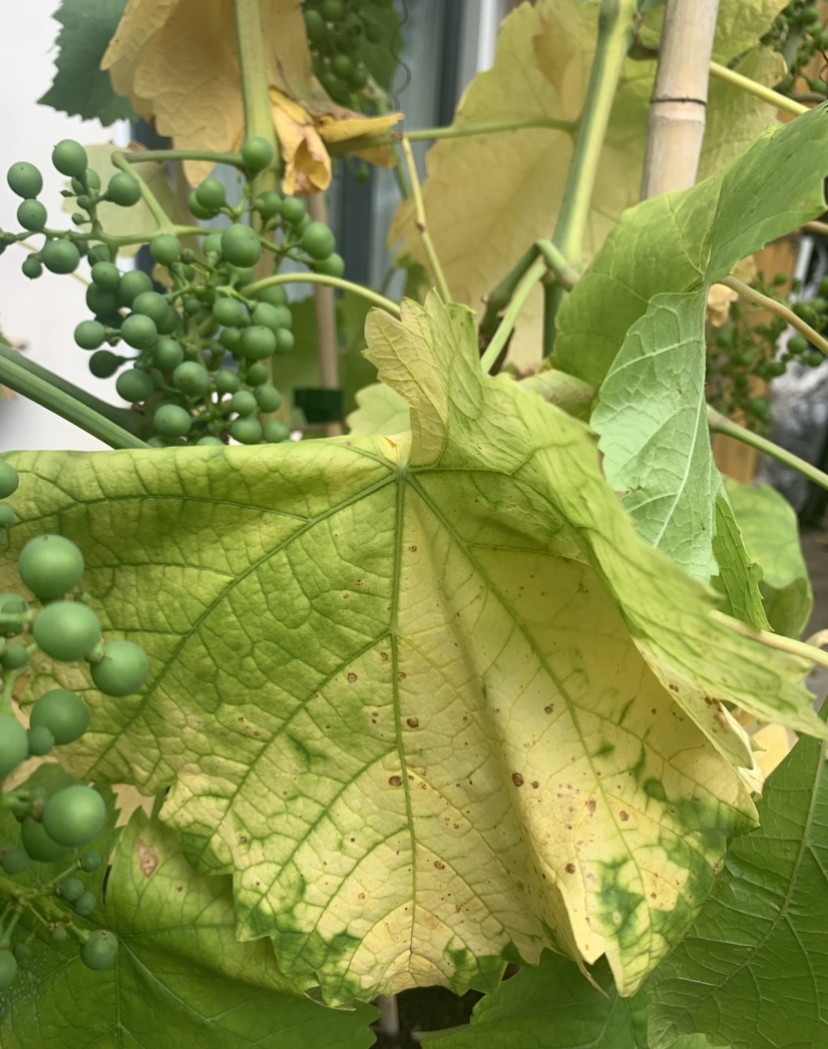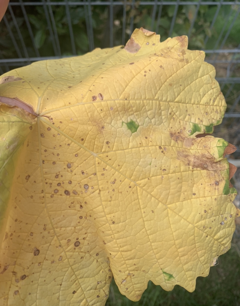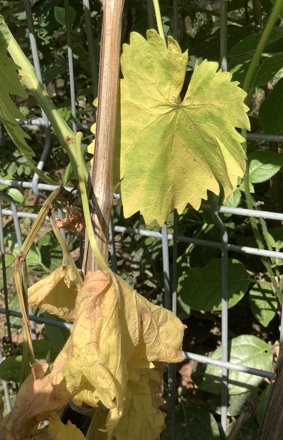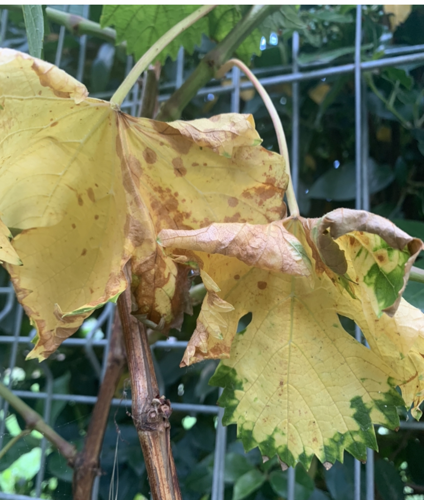 J’ai 2 plants de vignes de 3ans dont les feuilles du bas commence à jaunir puis tomber. Il s’agit d’un Perdin et d’un chasselas doré qui lui est en pot. Bizarrement un 3 eme pied de vignes planté a côté du Perdin est quant a lui tout vert mais n’a pas donné de raisin cette année malgré une taille en mars ?! Mon jardin est de type argileux . Je les ’arrose pas trop souvent et ces derniers temps il y’a eu pas mal d’averses.