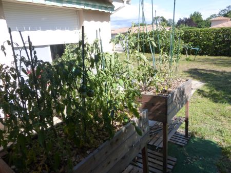 bonjour, j'ai planté quelques pieds de tomates dans 2 bacs surélevés, le premier bac avec de la terre de l'année dernière, et l'autre avec de la terre que j'ai acheté cette année - le 1er bac (au fond) les pieds ne poussent pratiquement pas alors que le 2e les pieds (au 1er plan) sont vigoureux et poussent très bien, est-ce que cela pourrait provenir de la terre ? et quels conseils pourriez vous me donner pour y remédier ? j'ai joins une photo , au 1er plan les pieds vigoureux avec la terre récente, et à coté les pieds avec la terre de l'an dernier - merci