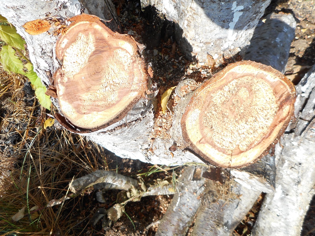 J'ai fait des photos de la coupe des 2 branches avant de les recouvrir de goudron végétal.
