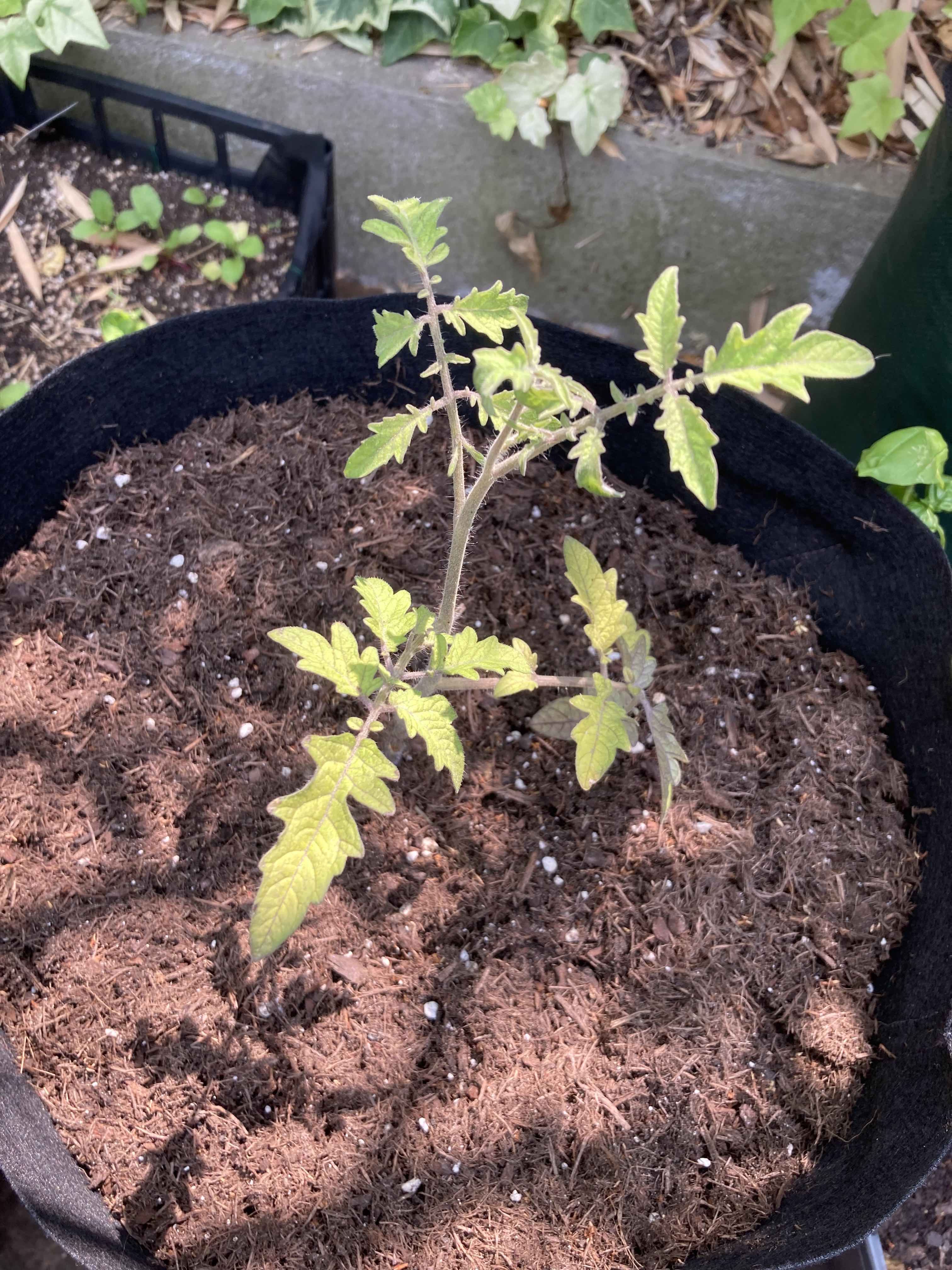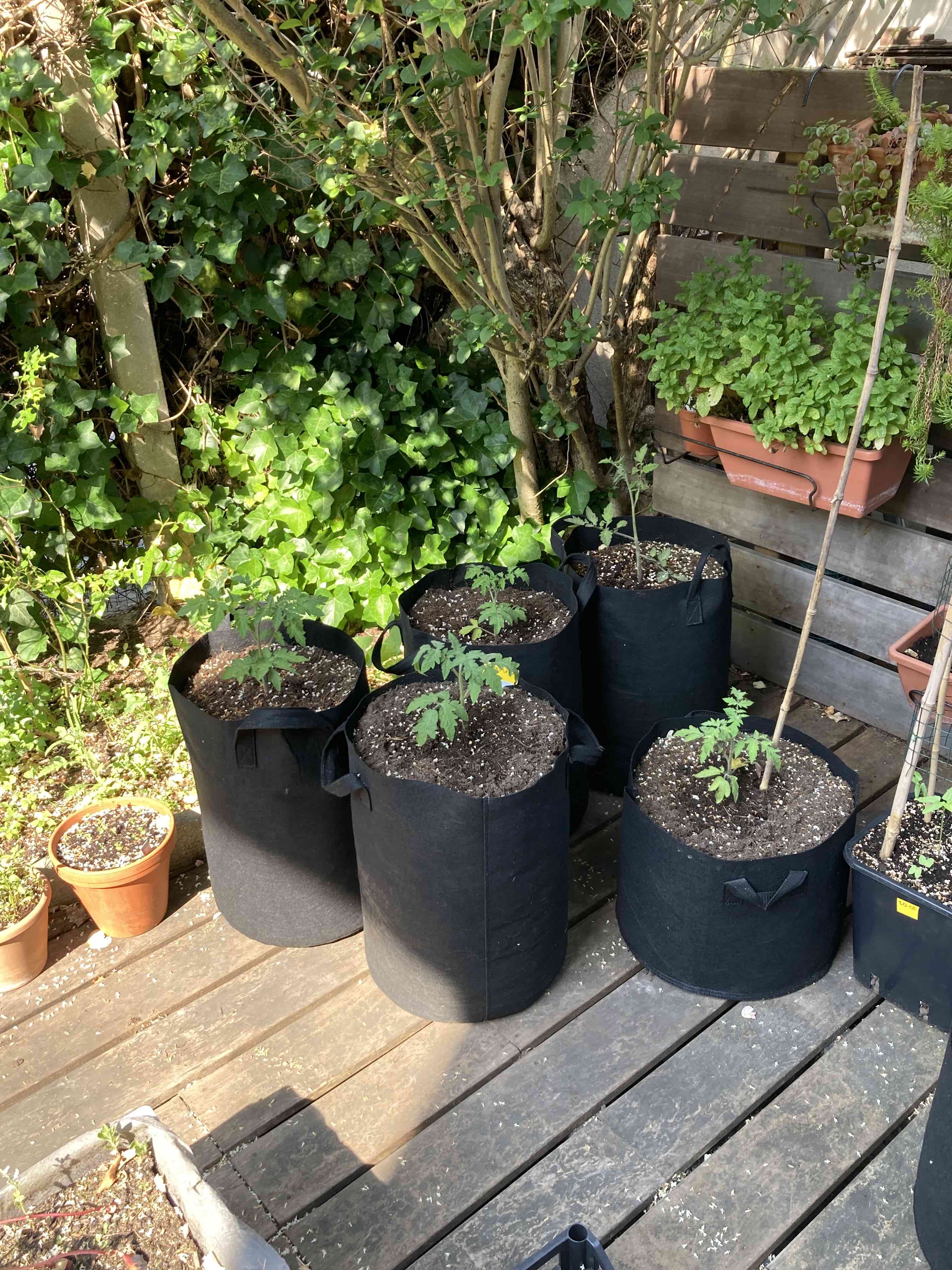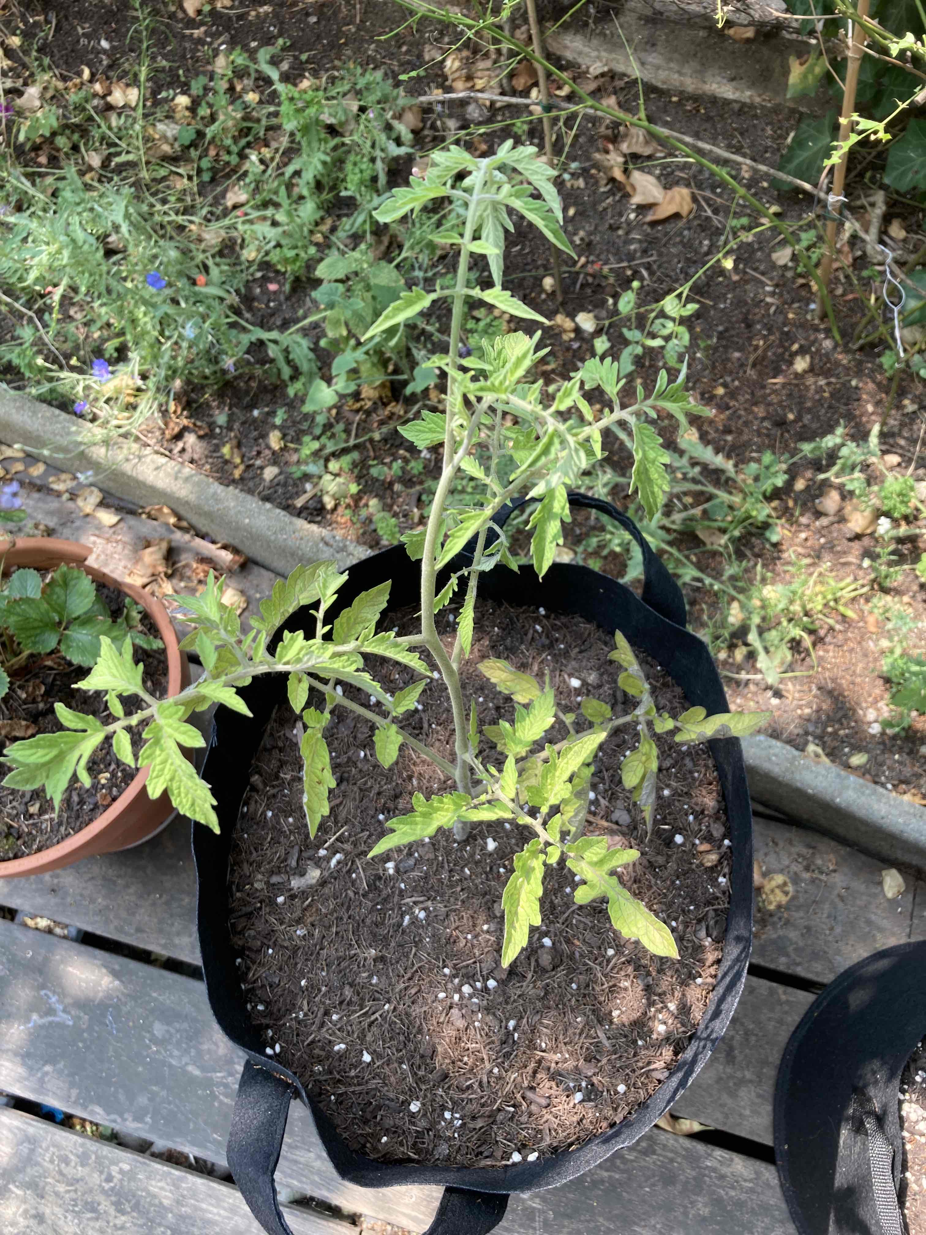 Les plants sont chétifs mais en bon état global, avec du jaunissement pour les feuilles du bas. Ils ont faim, trop à l'étroit dans leur sac, se comportent comme des bonzaïs.