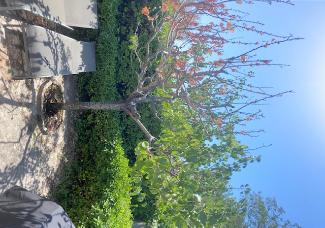 La partie gauche présente quand à elle une partie de branches qui semblent être dévitalisées ( feuilles mortes et écorces grises lorsque je gratte légèrement ) . De plus on peut apercevoir un relâchement de "gommes" ( résines ? ) sur la partie gauche.