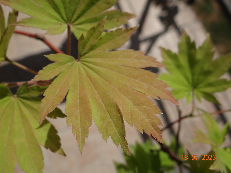 Je ne veux plus d'érables en pot sauf trois que j'ai depuis le début et qui ne supporte pas trop le soleil (butterfly, shigitatsu sawa, orange dream)