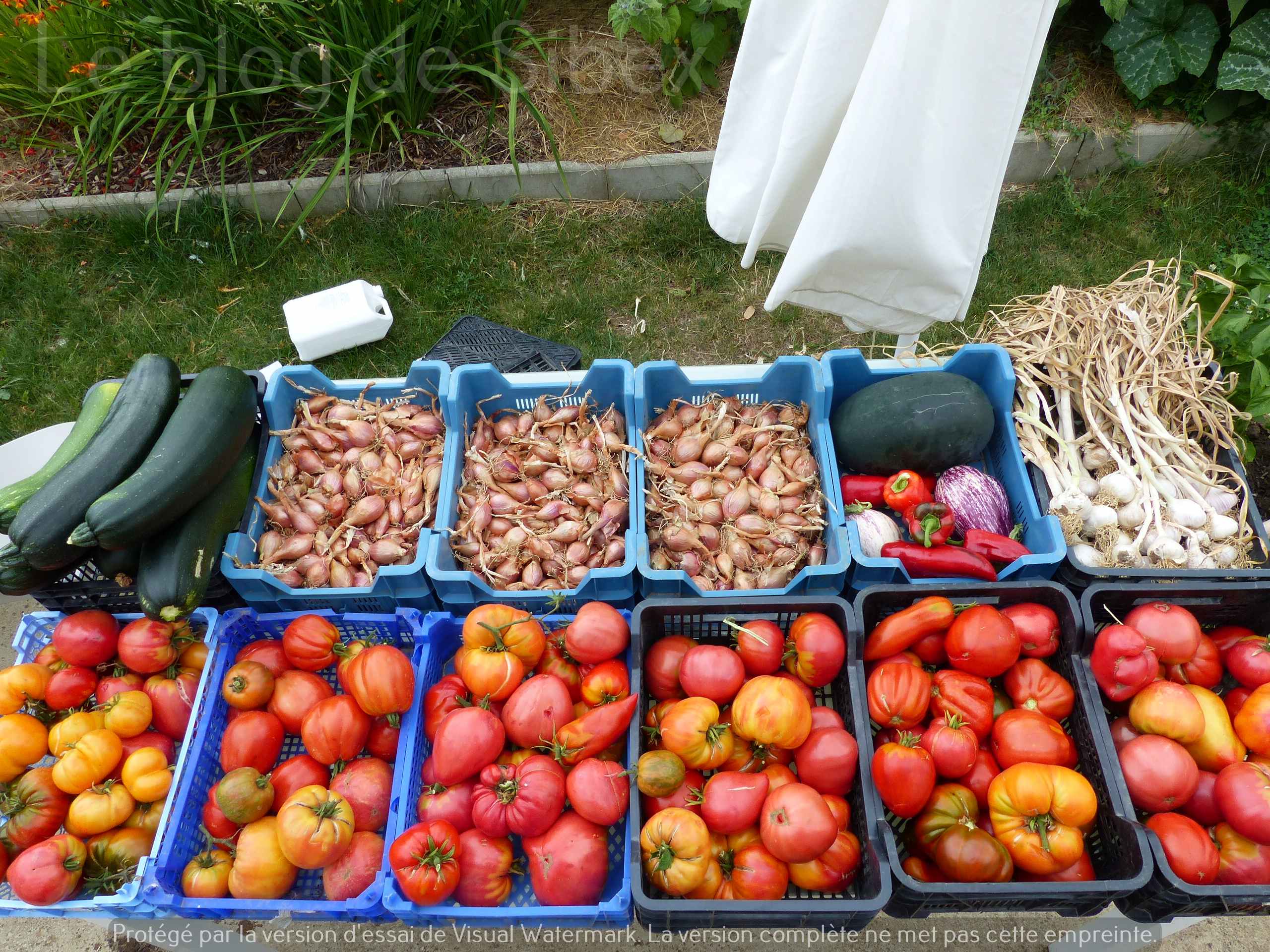 Les échalotes sont bien développées, belles tomates, enfin, tout est beau. Félicitations.