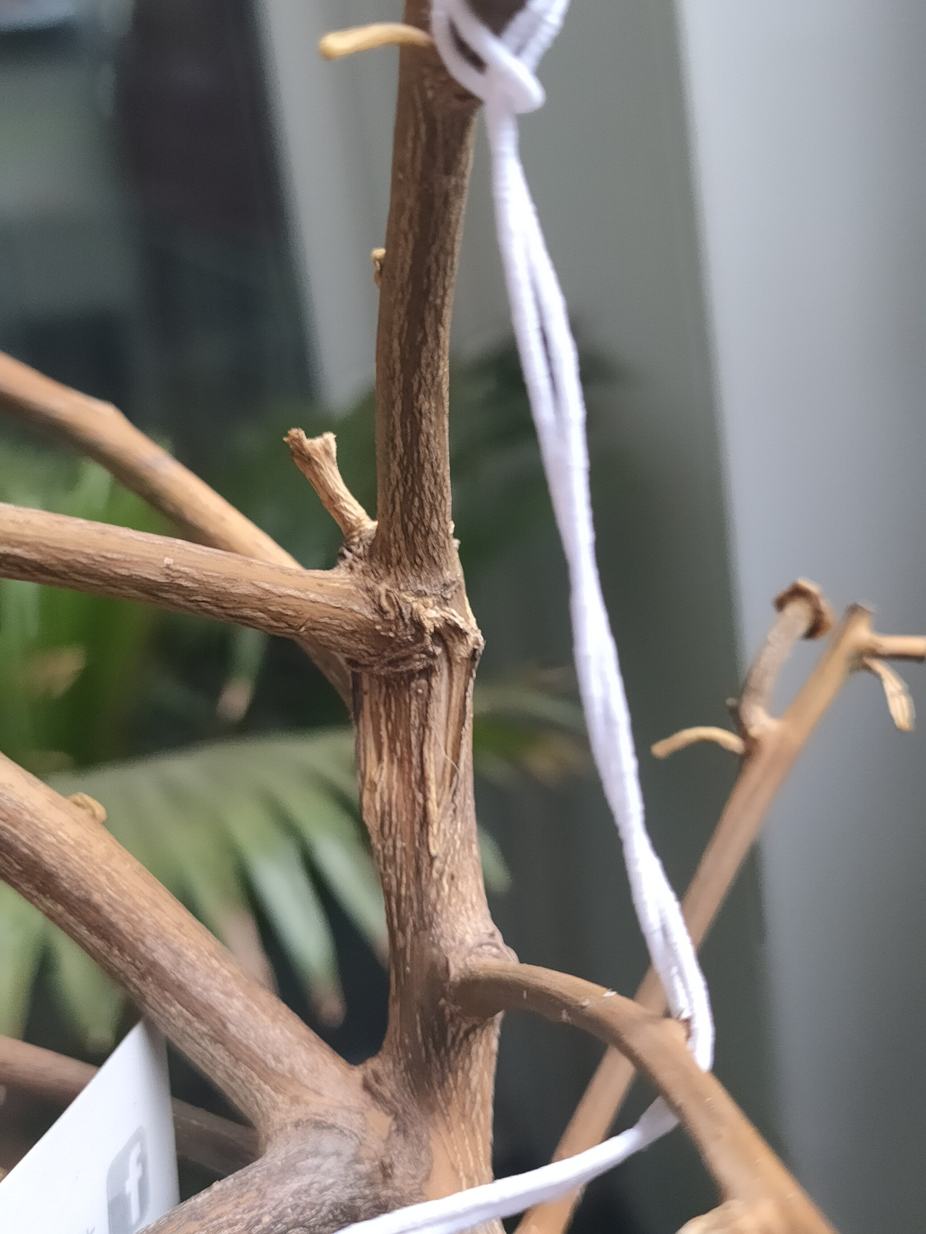 Nous avons cependant gardé espoir, je l'ai arrosé u peu chaque jour, j'ai changé pour du terreau tout neuf et je l'ai taillé. Quelques pousses ont commencé à se faire en bas du tronc ce qui nous a rassuré. Mais depuis 2 jours les branches se fendent ainsi que la base du tronc... Je ne pense pas que ce soit bon signe mais je n'en sais rien.