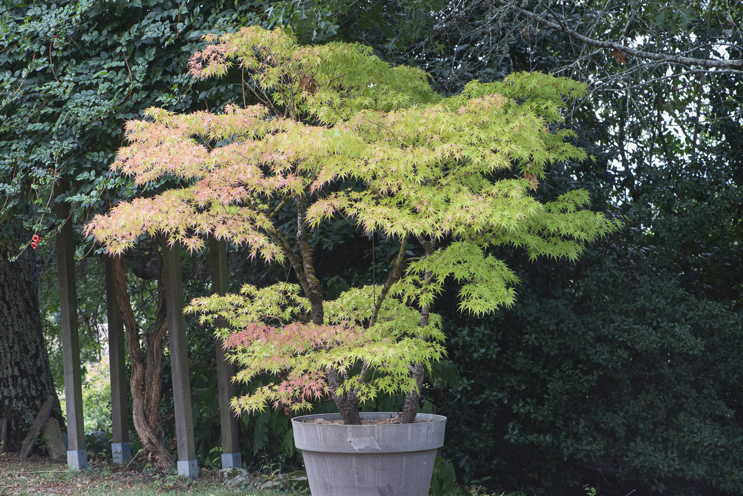 Illustration: Acer palmatum ‘arakawa’ 23 ans en été. Et palmatum type de graine 13 ans au printemps.