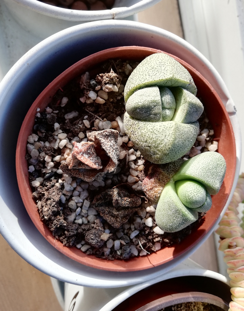 J ai un petit pot de lithops (pot d origine) sur les 4, deux se sont complètement rattatinés comme grillés et je suis perdue entre le fait de leur avoir donné trop ou pas assez d eau en fait... Ceux qui sont encore "vivants" commençaient à se rider sur les feuilles externes mais un petit arrosage (bassinage) et un ou 2 petit pschitt d eau ensuite à côté quelques temps après) leur a permis de se regonfler un peu. .. Par contre pour les 2 autres ils sont tous secs....