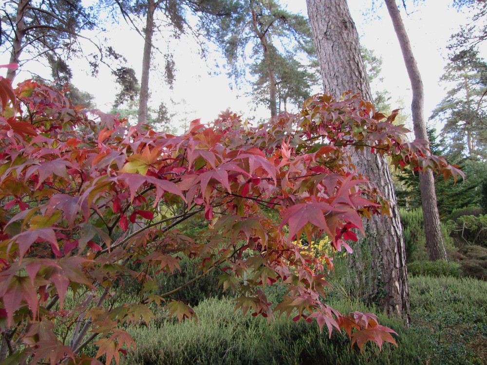 A l'Arboretum des Grandes Bruyères (Magnifique, il faut y aller !) il y a cet érable étiquetté "Acer sieboldianum". Au vu des feuilles, je pense que c'est une erreur d'identification : certes les samares sont rouges, mais les feuilles sont plus caractéristiques d'un amoenum.