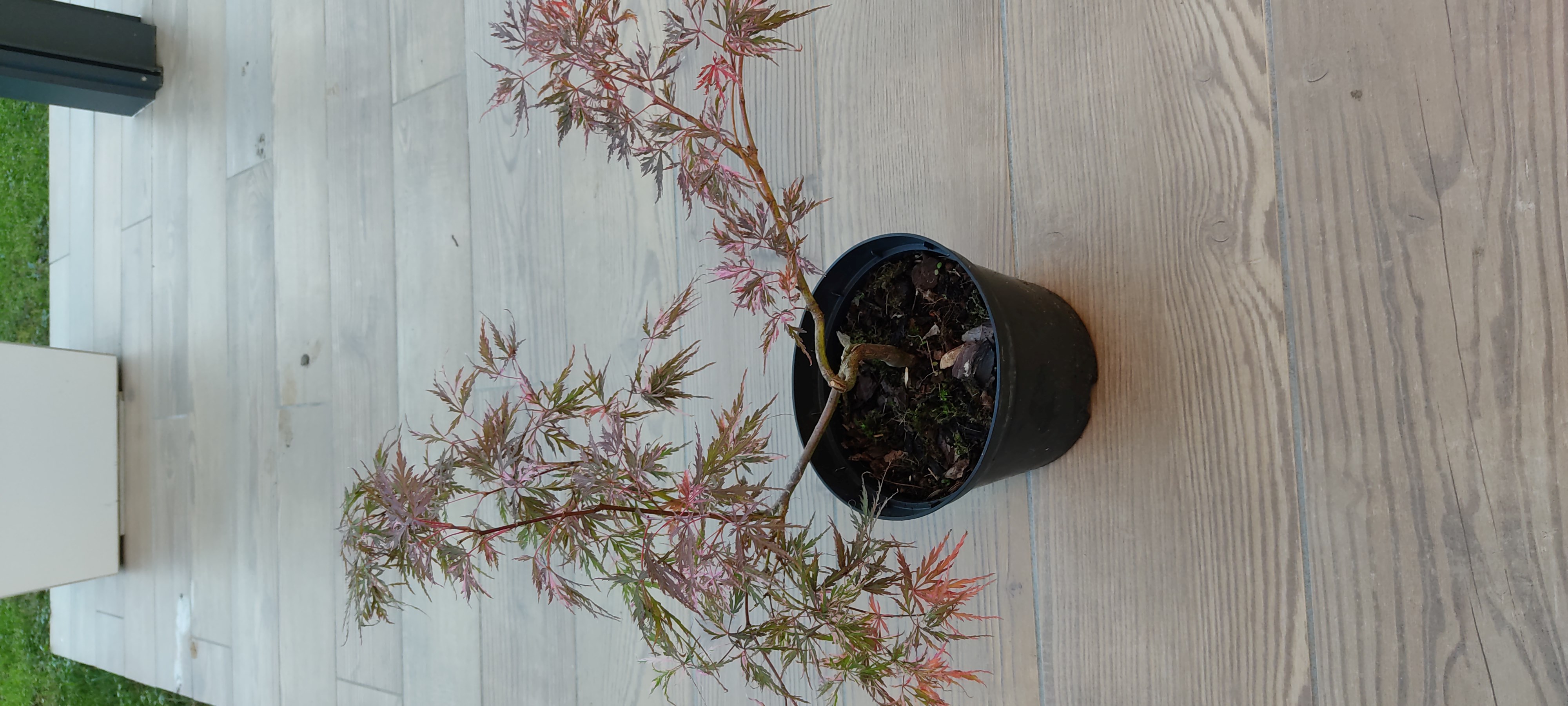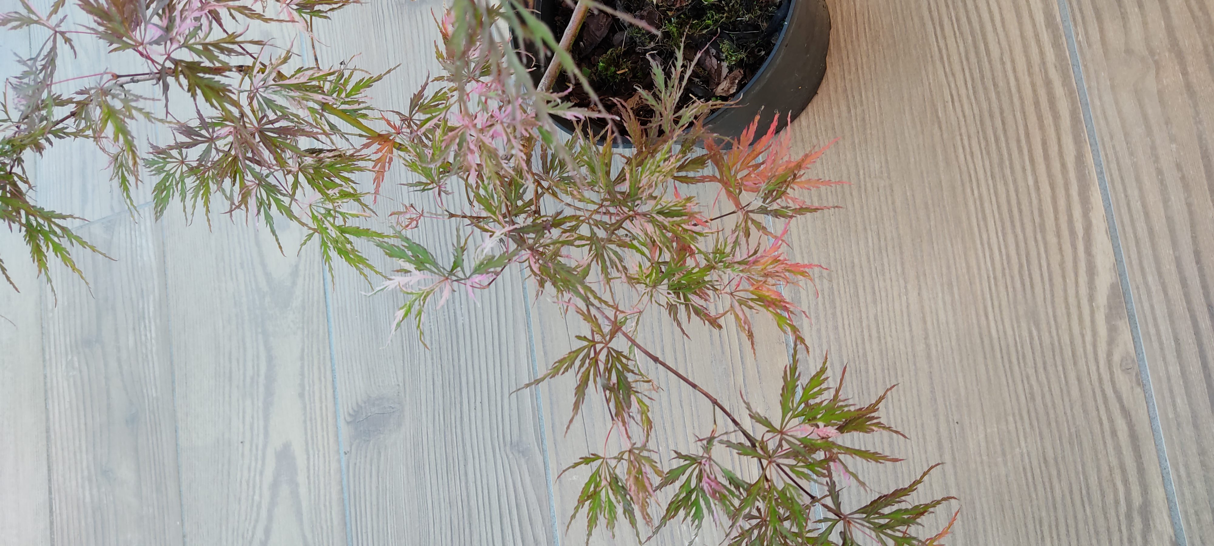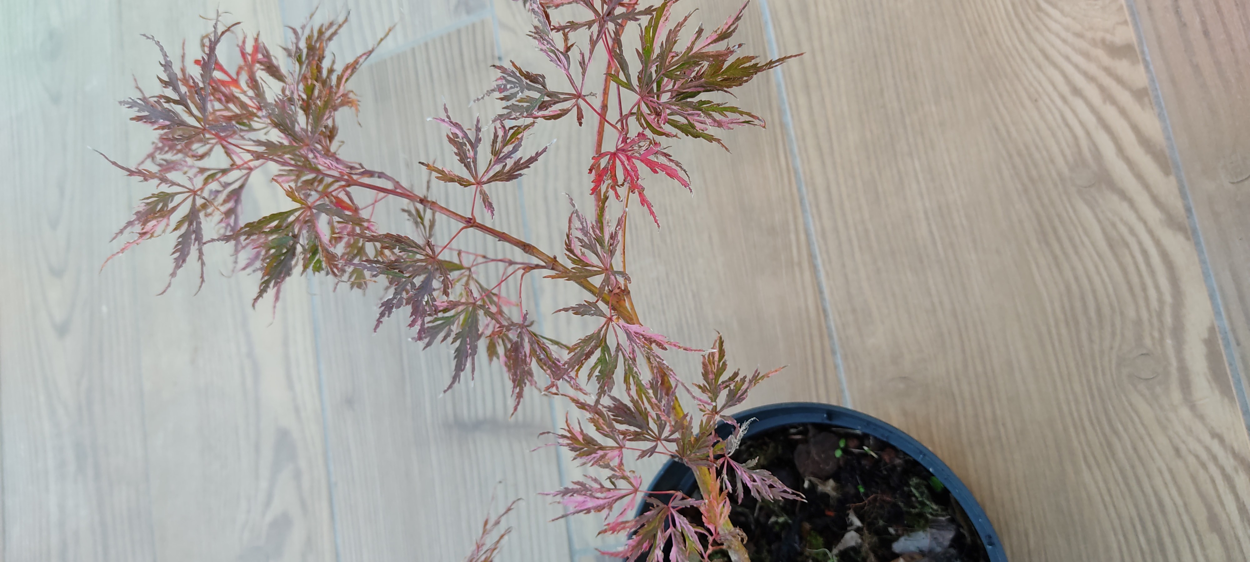 Feuillage lacinié rose thyrien panaché de brun au printemps et sur les jeunes pousses estivales. Rouge orangé en automne. Variété très rare en culture difficile à multiplier mais un des plus beaux panaché de dissectum. Variété protégée sous licence. Multiplication interdite.