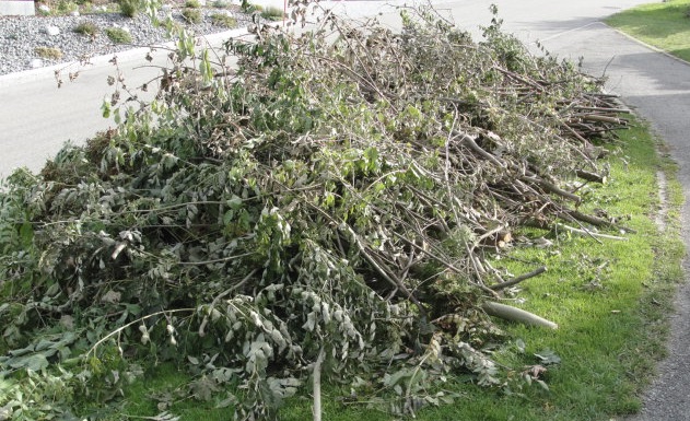 et ont transporté les branches (environ 7 variétés d'arbustes) au bord de la route.
