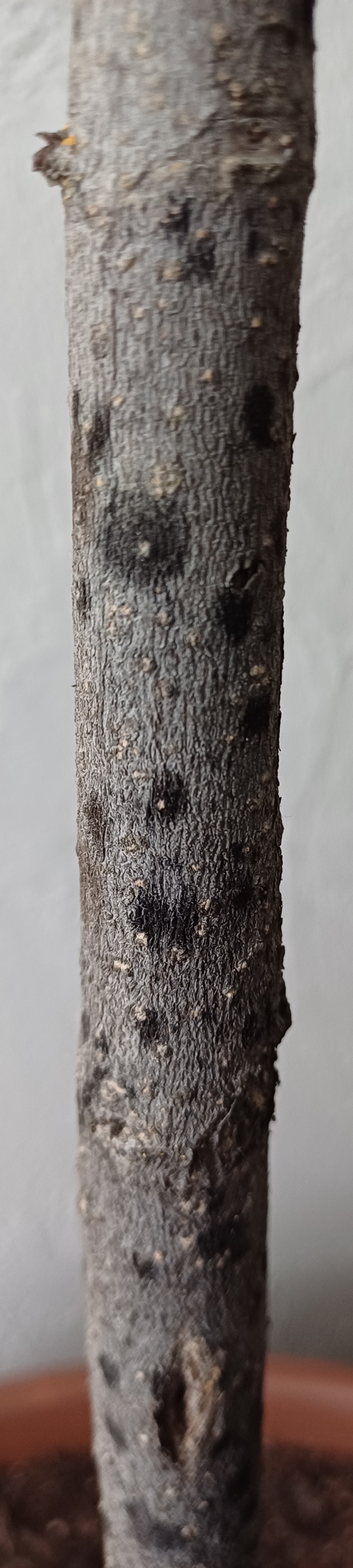 En voulant le remettre dehors ce matin, je me suis rendue compte qu'il avait de l'odium. Ce qui m'inquiète (d'ou le message sur ce forum), c'est qu'il a plusieurs taches noiratres sur le tronc (voir photo ci-jointe) et je ne sais pas du tout ce que celà peut être.