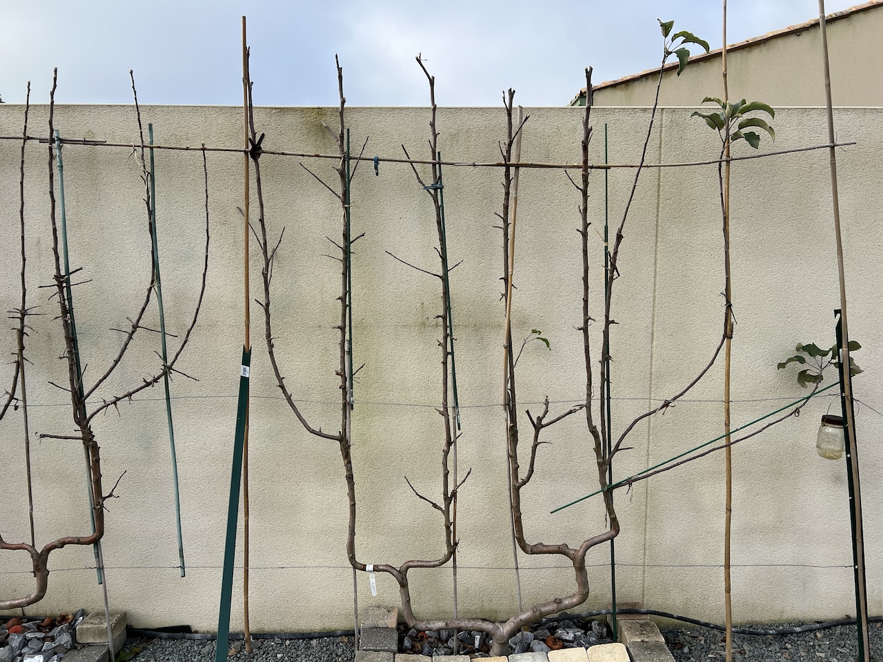 Mes deux petits pommiers en espalier ont bien fourni cet été et Je vais reprendre leurs supports cet hiver. J'imagine aussi qu'il va me falloir les tailler mais je n'ai pas toujours compris comment procéder.