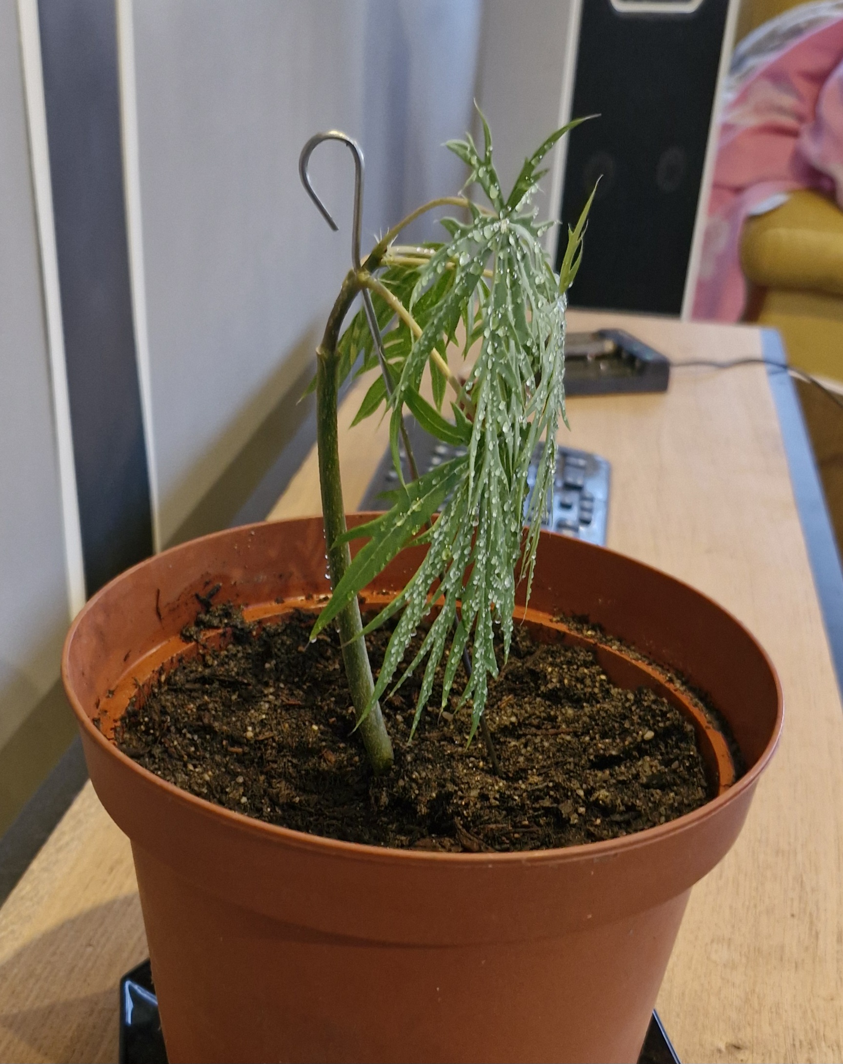 Je viens de lui remettre de l'eau plus un coup de vaporisateur sur les feuilles et la tige car je pense qu'il a pris un coup de chaud mais je ne suis pas sûre à 100%. Quand pensez-vous ?
