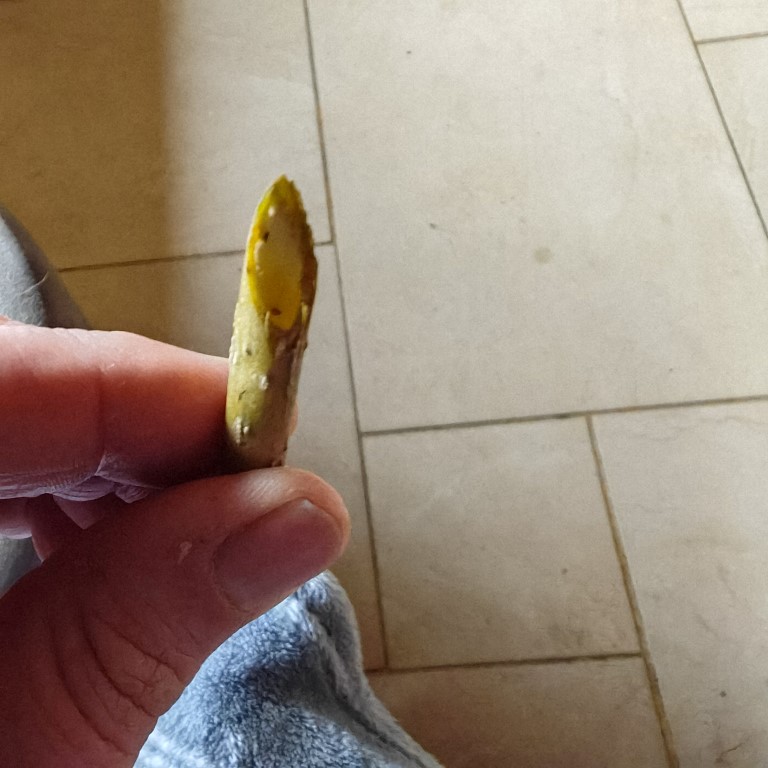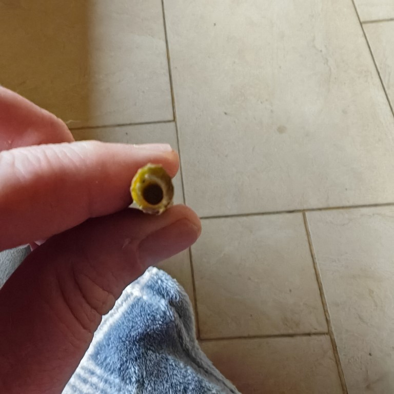 J'ai décidé de couper cette extrémité et je constate que la tige est creuuse, avec juste un léger pourtour intérieur blanc