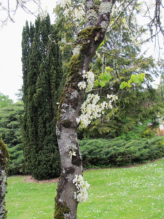 Jusqu'à présent je ne connaissais que le Cercis siliquastrum à fleurs roses (on en voit partout !), mais il y a quelques jours j'ai eu la surprise de m'apercevoir qu'un arbre couvert de fleurs blanches était de toute évidence un Cercis :