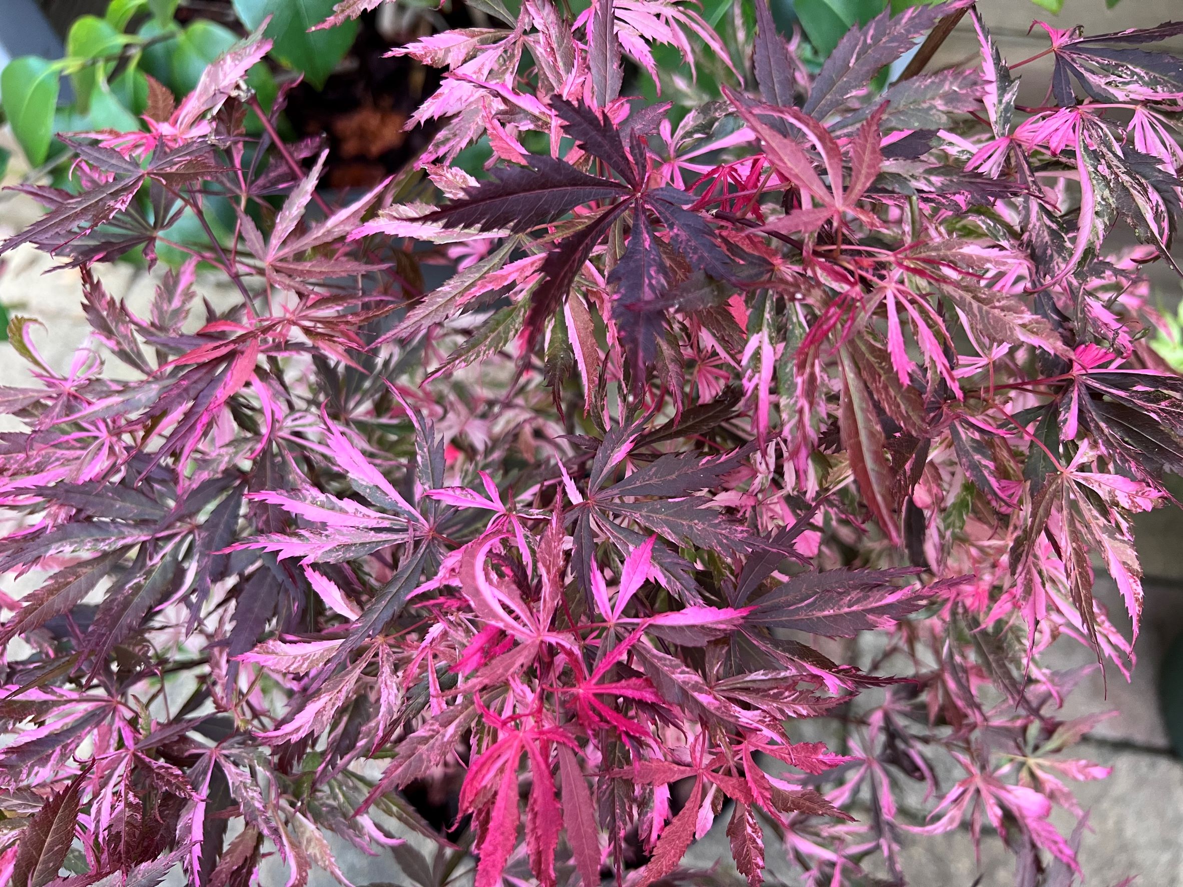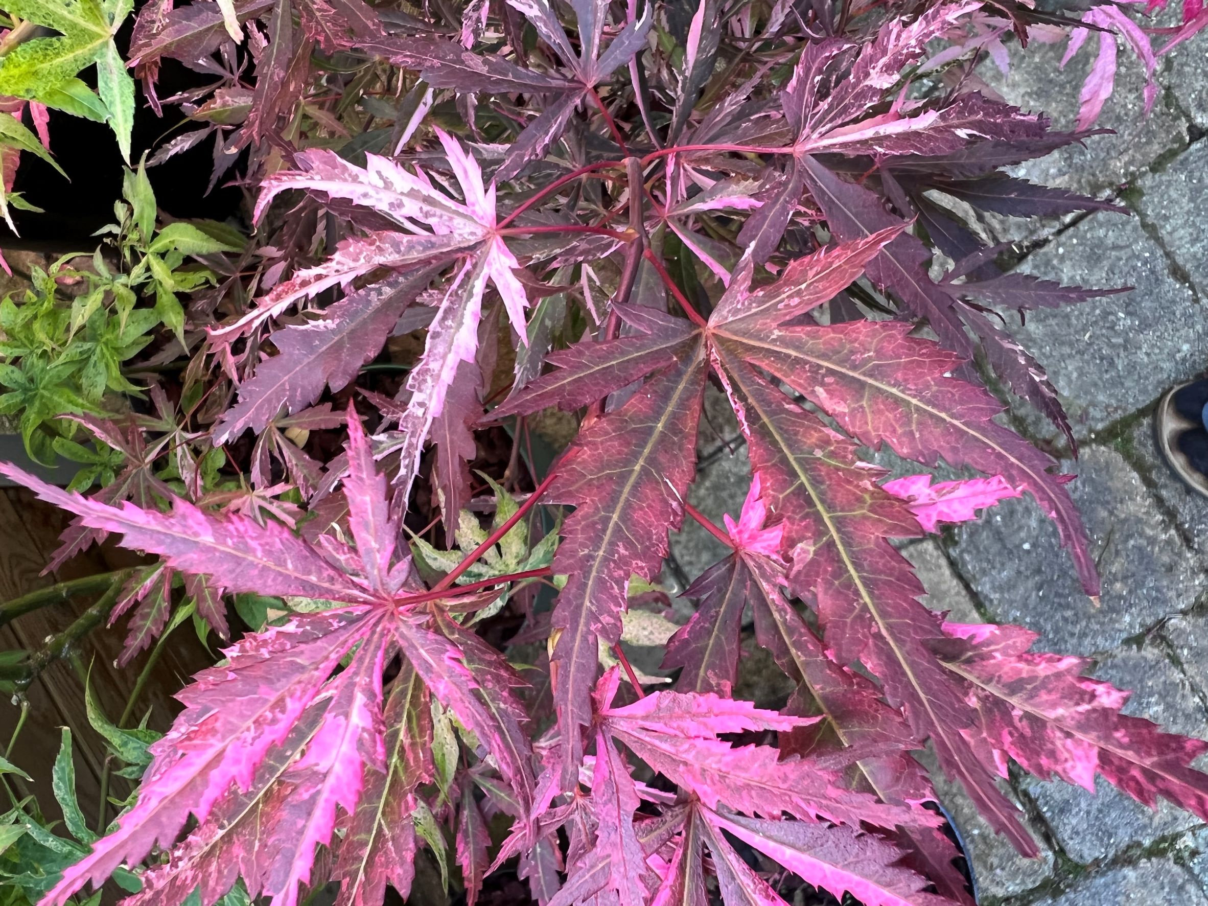 Concernant la couleur, je suis plutôt d'accord, il a beaucoup de vert, peu de rose ou de blanc. Mais je ne me formalise pas pour ça : de l'eau, de la nourriture, pas trop de soleil, tout cela favorise la croissance, racinaire et aérienne, pas forcément les couleurs. Un certain stress (ou un manque de vigeur), une maturité plus avancée, font parti des conditions à remplir. De plus, il est difficile de maîtriser toutes ces conditions favorables aux couleurs, deux spécimens du même cultivar ne réagiront pas de la même façon, à cause de l'emplacement choisi (plus ou moins ensoleillé, plus ou moins humide, etc...), sans compter sur les différences génétiques. Parfois les couleurs se révèlent après plusieurs années (avec l'âge) ou, au contraire, se perdent. C'est la magie des Acer et ce qui motive aussi nos recherches et nos efforts pour leur offrir un milieu favorable sur tous les points.