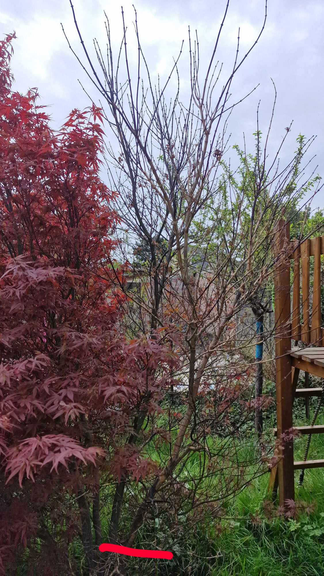 Voici les photos de mon érable japonais (aucune idée de la variété), cette année la moitié de l'arbre ne fait pas de feuille et voici la tête de cet arbre que j'aime tant. Il a été planté en 2017 et s'est toujours bien porté, il est magnifique et je ne voudrais pas le perdre.