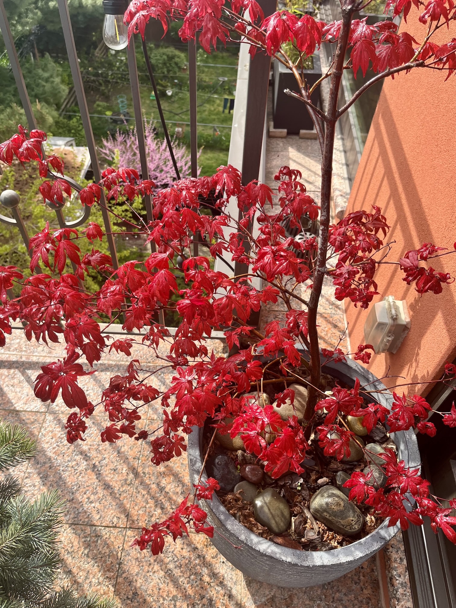 Je l'arrose avec de l'eau de pluie que je récupère avec un bac en plastique situé sur mon balcon également.