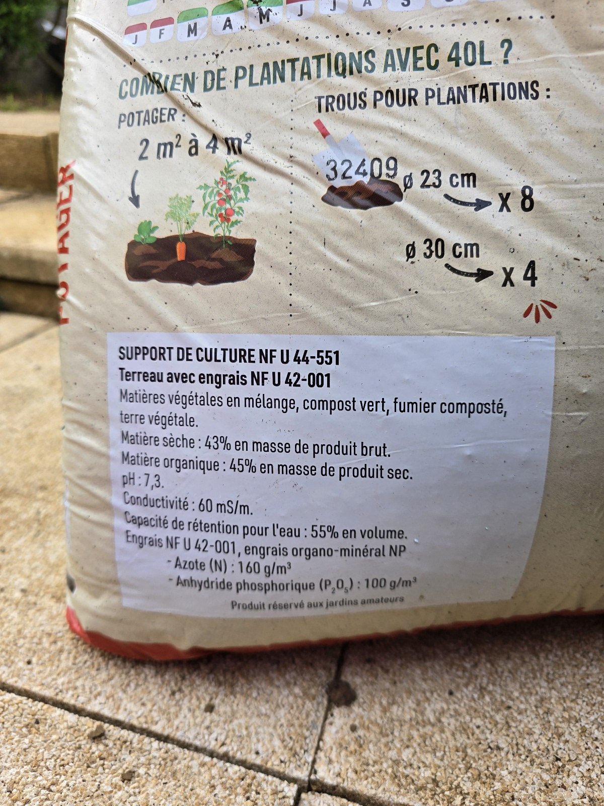J'ai enlevé les 3 terreaux Fertiligène en paquet de 6 litres vendus par 3 enseignes différentes entre 0,99 et 1,25 € le litre !