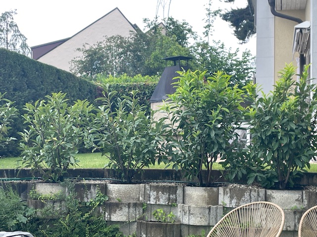 Ces lauriers ont été plantés au-dessus d'un mur composé de pots en béton. De ce fait, les lauriers sont plantés dans certains de ces pots qui ont été remplis de terre. J'ai plusieurs questions concernant ma haie.
