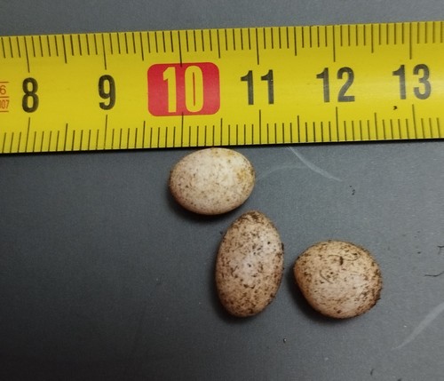 Bonjour. Je vidais un pot de fleur dans mon jardin dont la plante (thym) était morte depuis longtemps. Il n'y avait que de la terre sèche et les racines du thym sèches aussi. Au milieu des racines, j'ai trouvé 14 petits oeufs de 8-9 mm de long, ovales, bien blancs, plutôt durs au toucher, légers, un peu cotonneux semble t'il. Sur la photo, ils sont salis car je les ai recueillis dans un pot de confiture avec de la terre poudreuse. Je n'ai pas osé en écraser un... Je ne sais pas quoi en faire... les garder un peu pour voir ce qu'il va en sortir ??? A qui appartiennent ces oeufs ??? Si quelqu'un avait une idée ??? Merci à vous