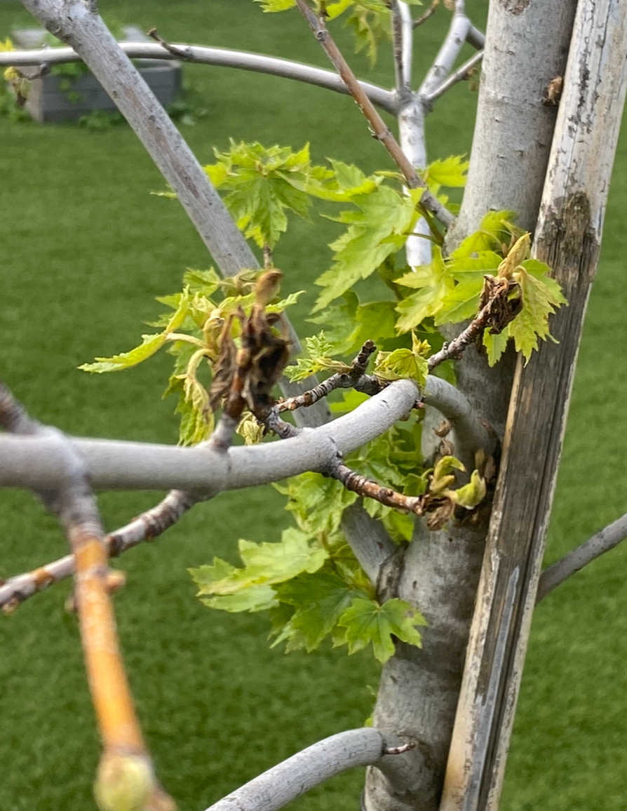 Plante il y a deux ans cette année les feuilles peinent à sortir et se rabougrissent comme sur la photo.