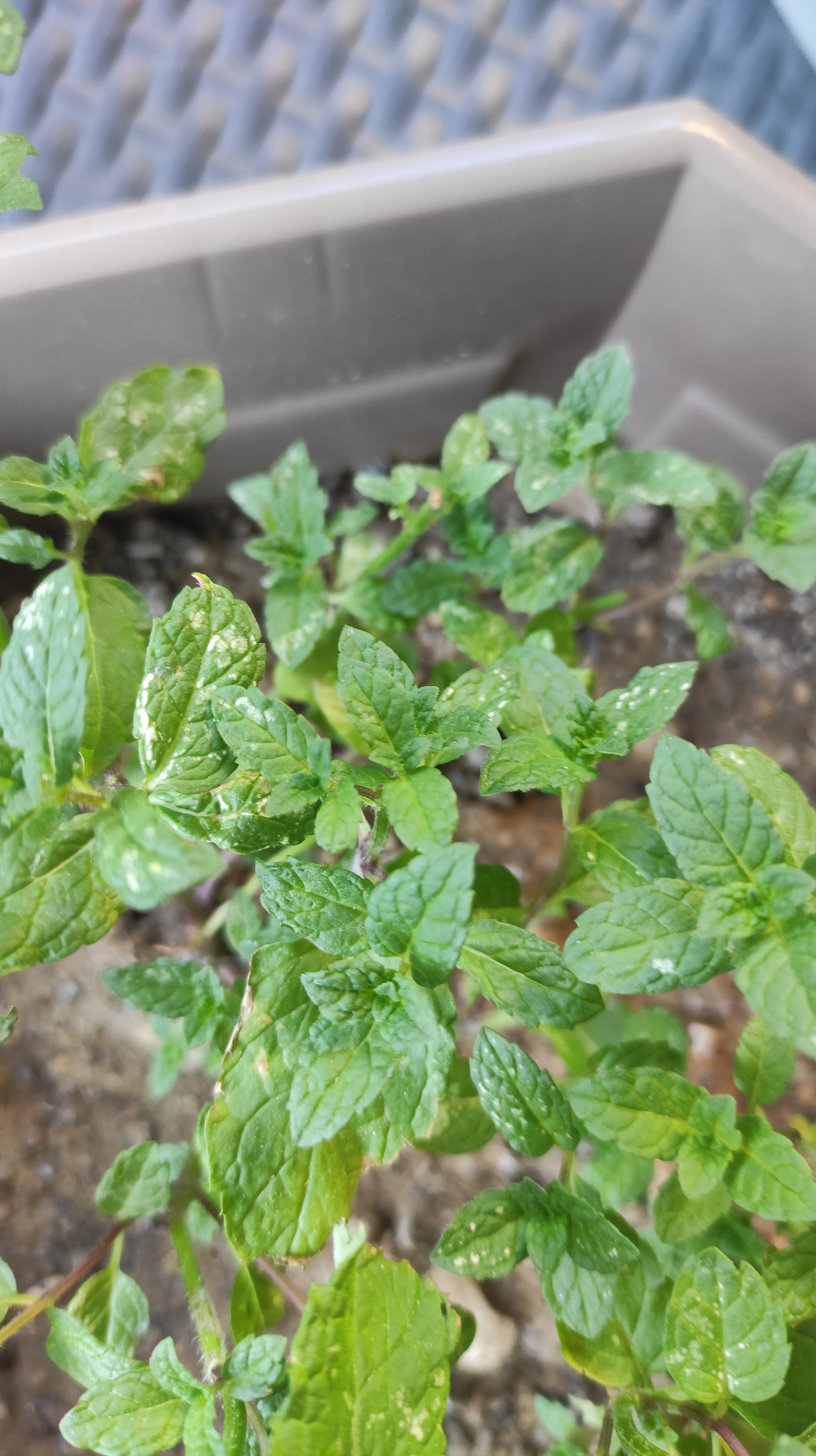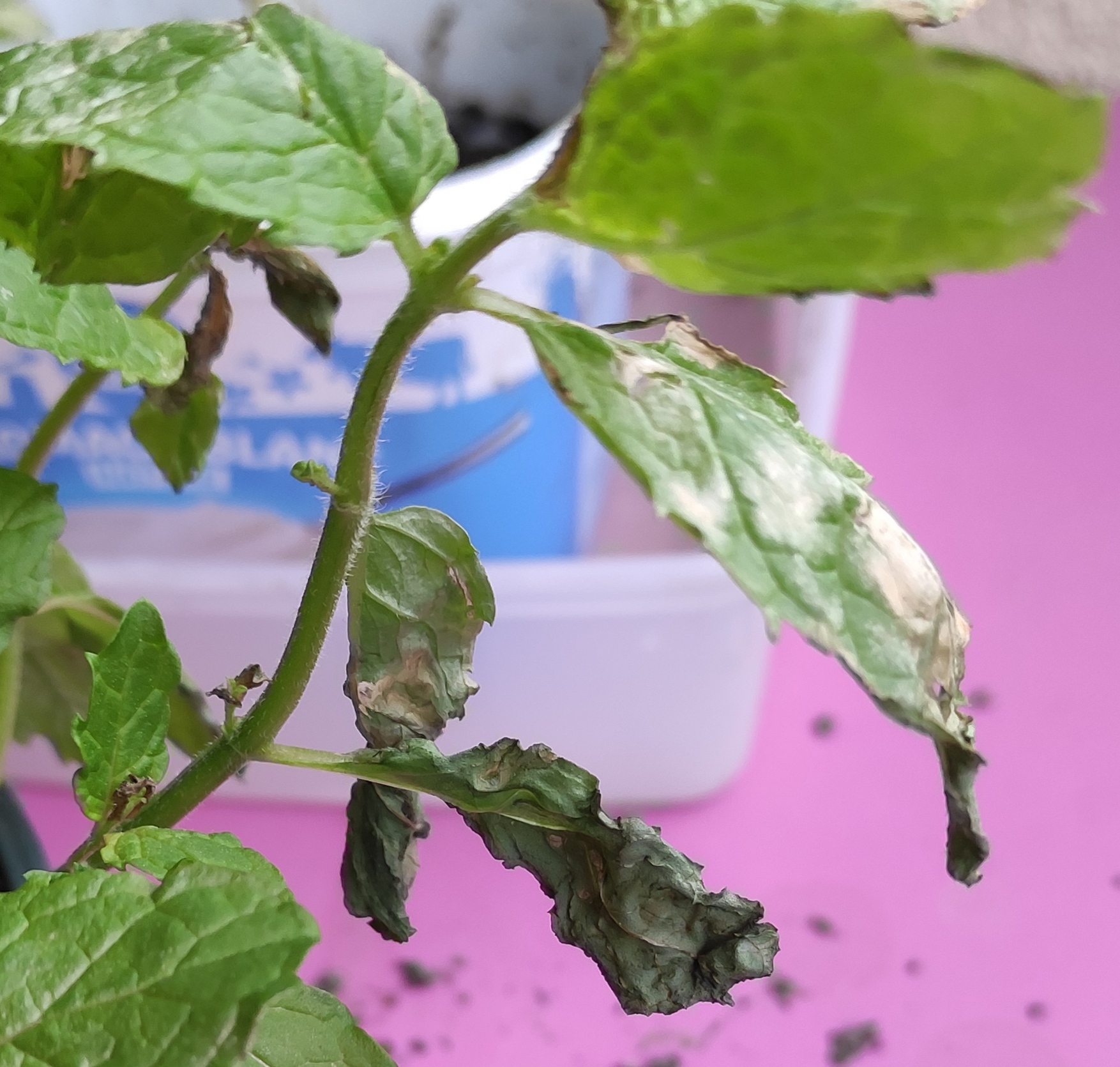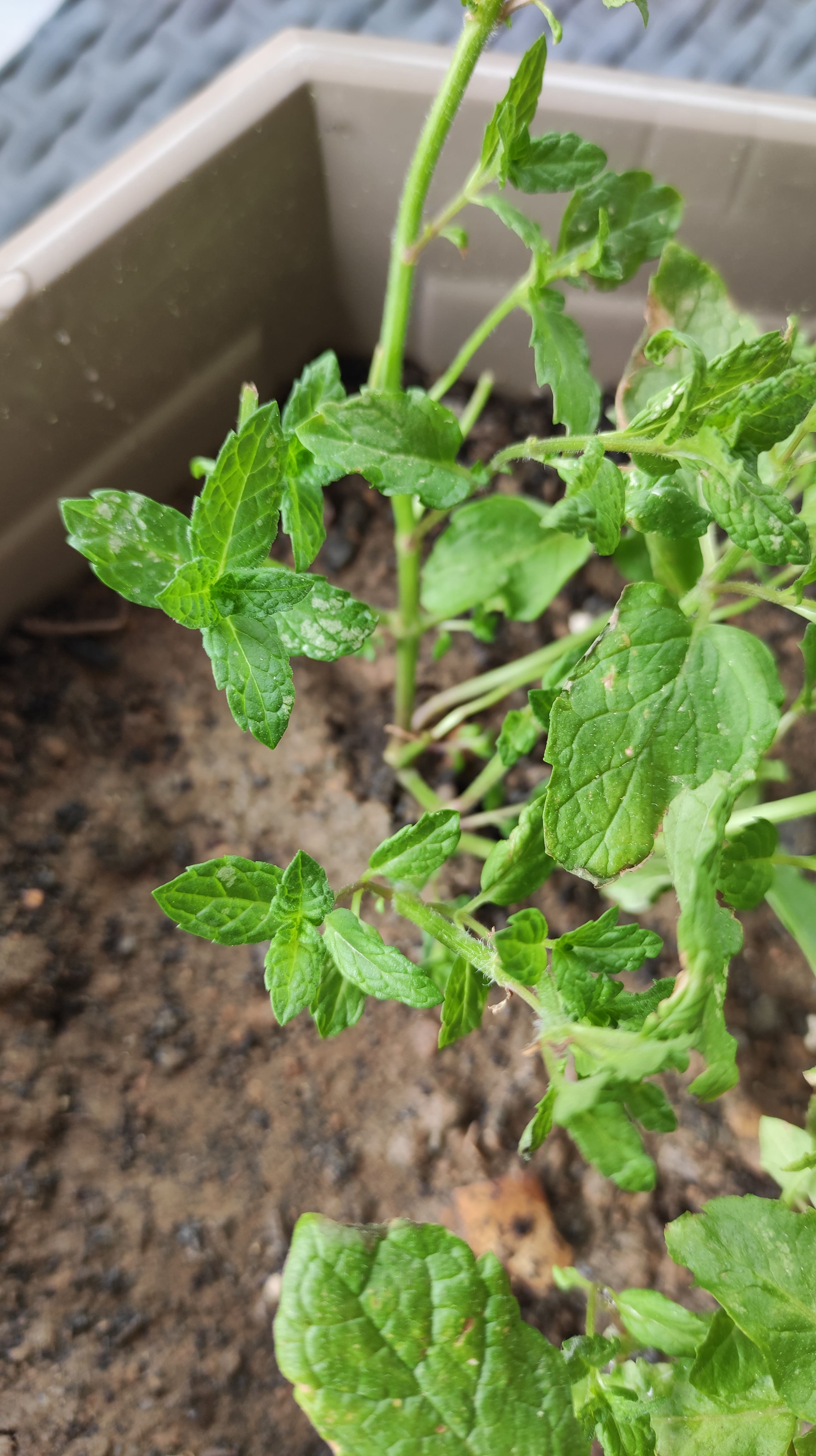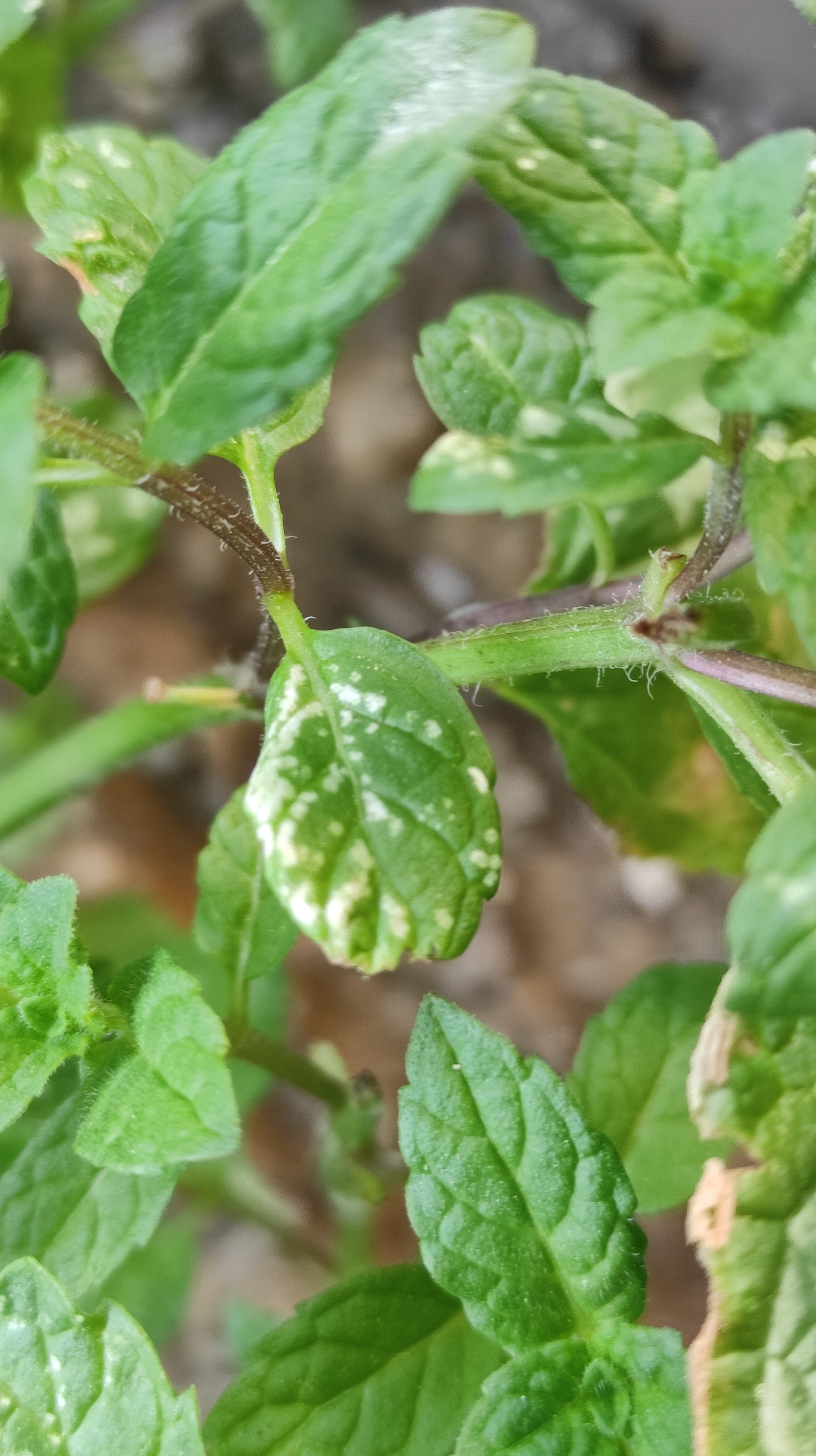 Je ne sais pas si quelqu'un a une autre idée, peut être le mildiou de la menthe?? la photo n'est pas évidente