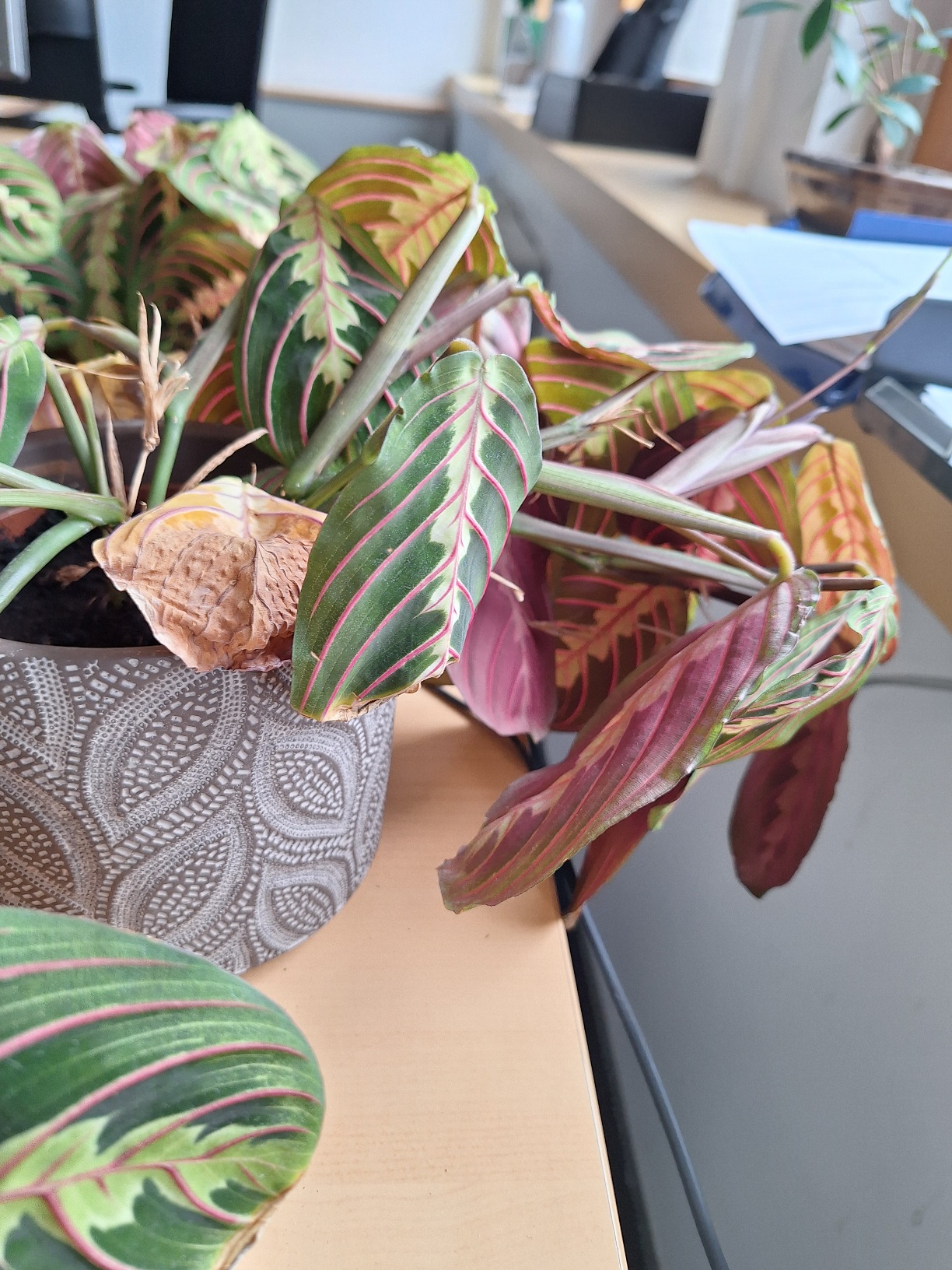 Petite mise en contexte : j'ai offert une plante a une collègue au mois de mai qui me l'a reconfier car celle-ci semble bien malade (ce n'est donc pas moi le fautif :mrgreen: ) : feuilles qui jaunisses, présence de "rouille" sur les feuilles, certaines pousses qui pourissent. De plus, elle fait peu de nouvelles pousses si on compare a la mienne qui prend ses aises (je vais surement devoir la rempoter tant elle pousse vite!) que j'ai acheter a la même période et qui s'est vraiment embellit.