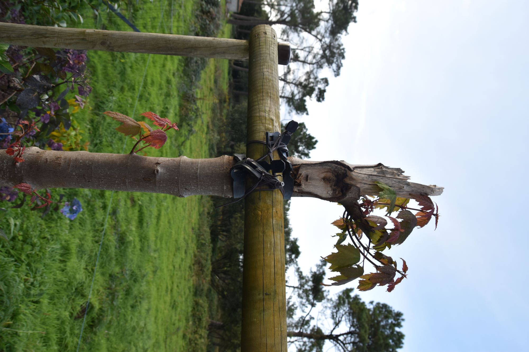 Tu vas couper le tronc avec une scie juste dessous le lien qui l’attache au tuteur.