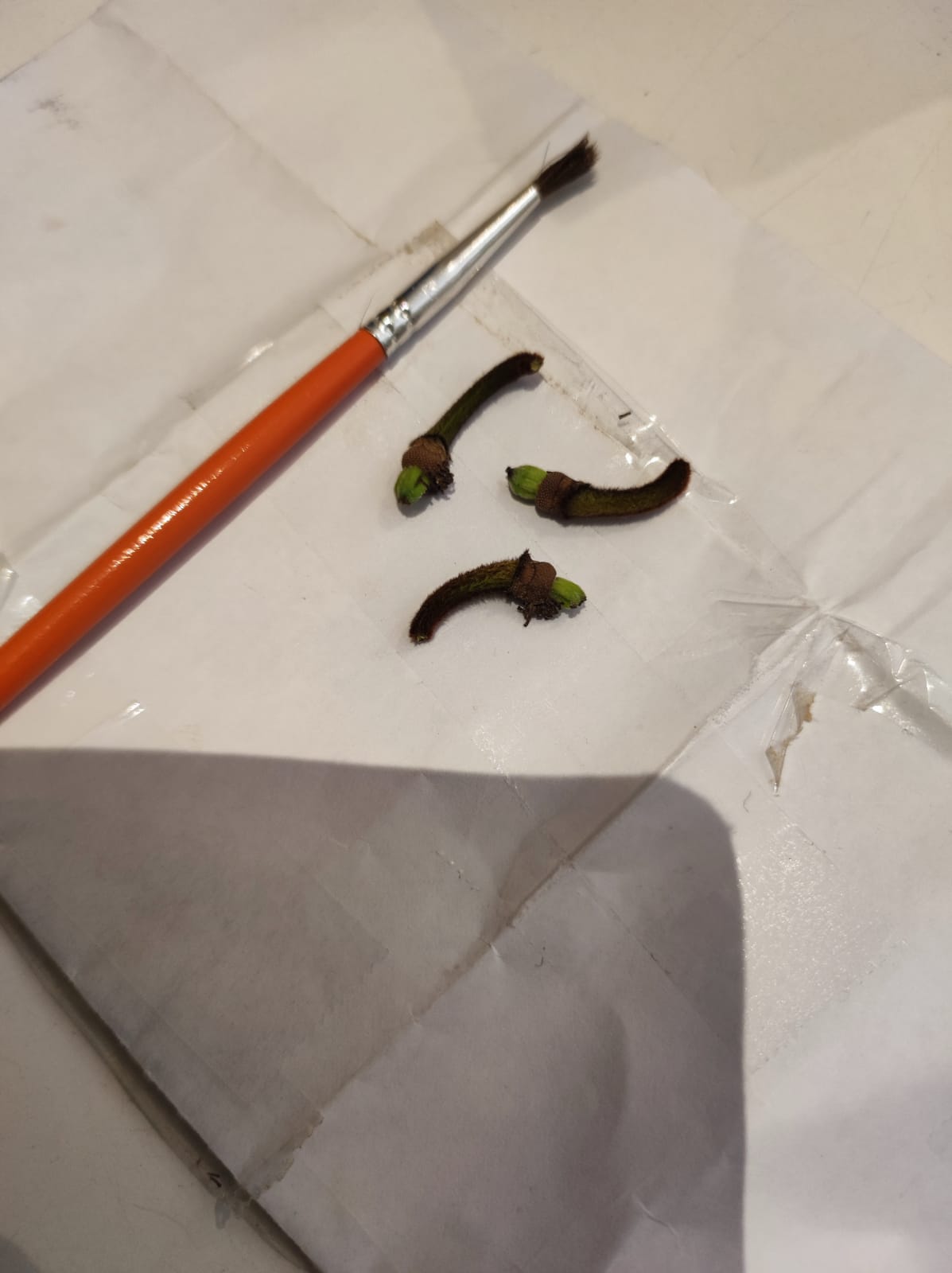 j'ai utilisé un petit pinceau et du pollen qu'on m'a envoyé :