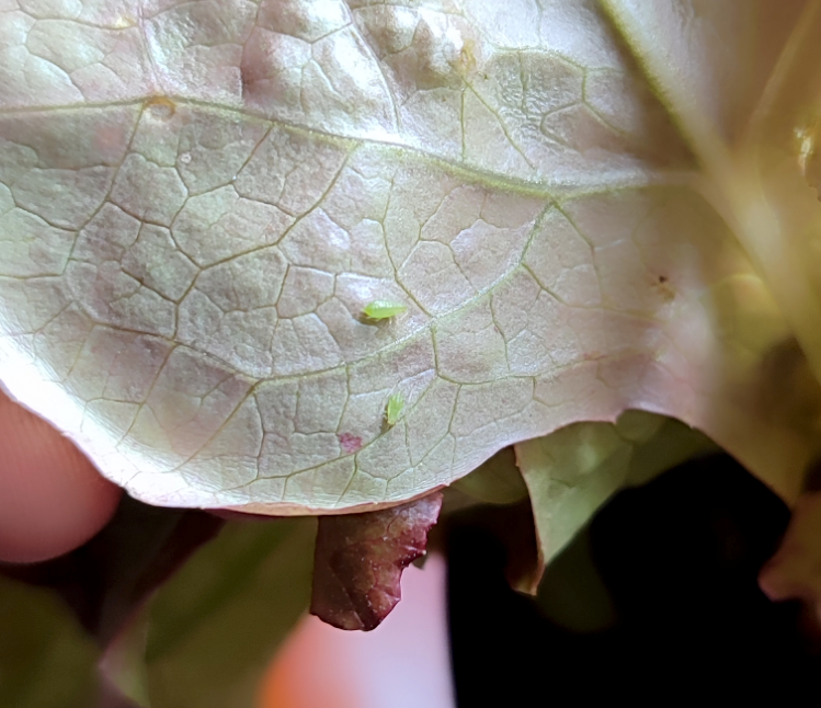 S'il n'y en a pas plus que ça, il faut laisser. Les pucerons devraient dégager au moment de laver les feuilles à la cuisine. Si beaucoup de pucerons, il faut mettre un voile assez fin sur la culture.